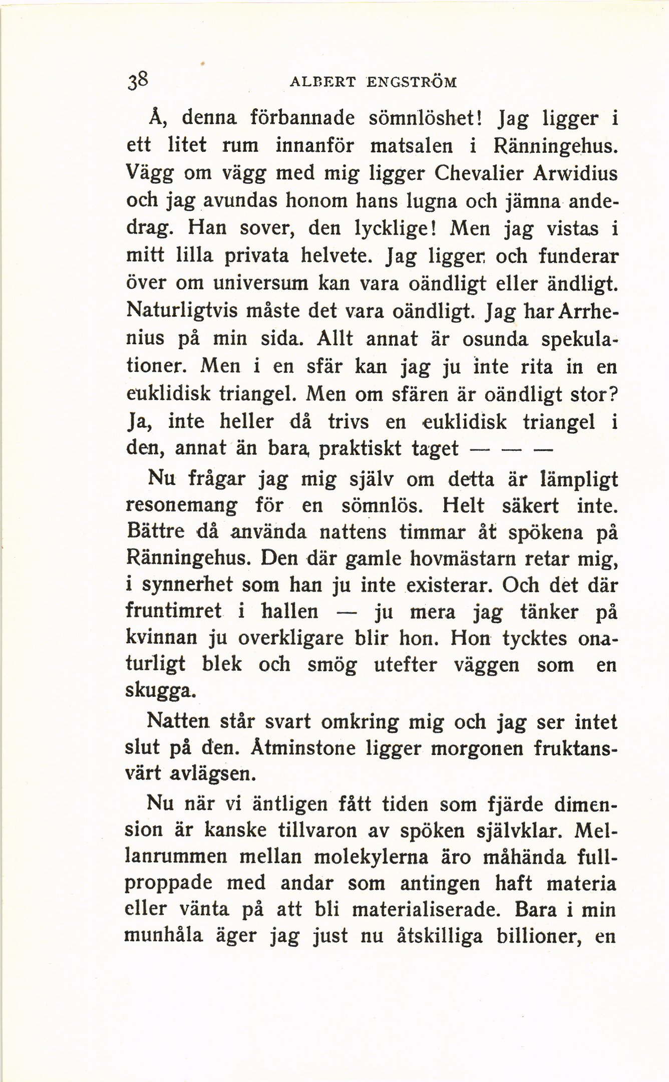 andedrag. Han sover, den lycklige! Men jag vistas i