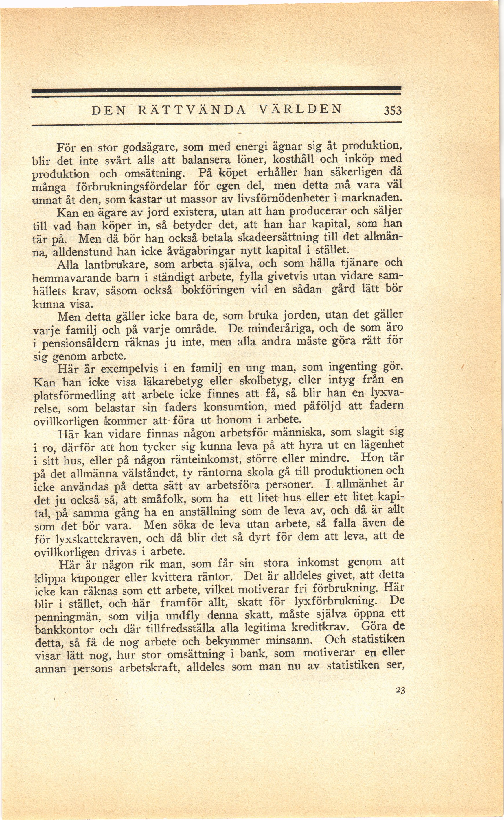 Full resolution (JPEG) - On this page / på denna sida - Andra delen - En ny nationalekonomi. Kontroll över kapitalets gång. Stigande skatt på överförbrukningen Inga stående skulder. Ränte- och myntreglering - Alla drivas i arbete — den elfte vinsten av stämplingen