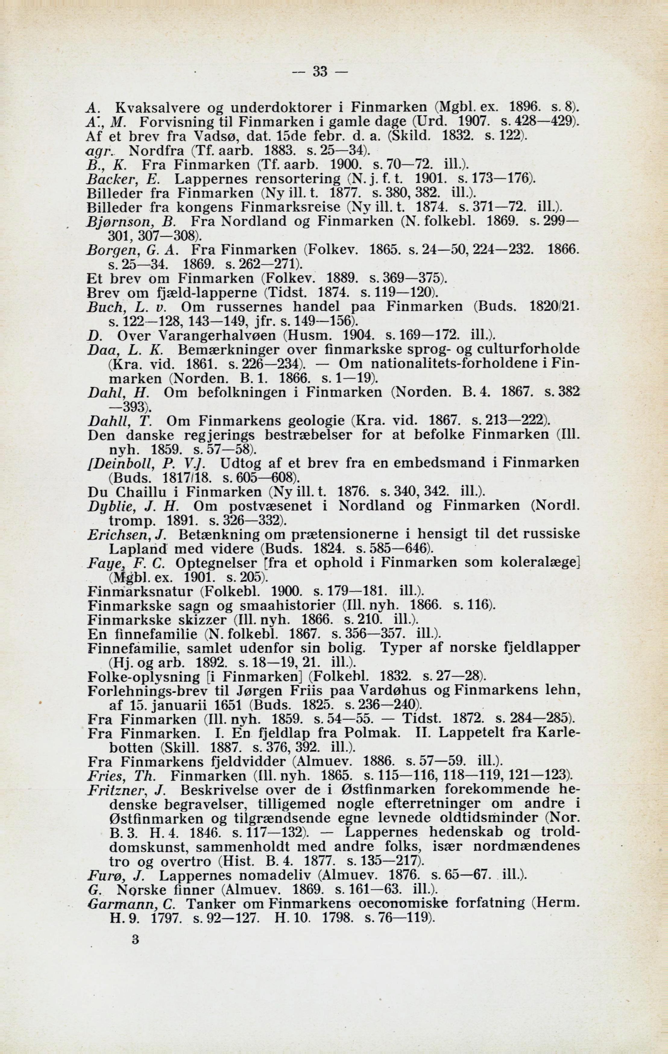 A’., M. forviBning til Finmarken i gamle dage (Urd. 1907. s. 428—429).