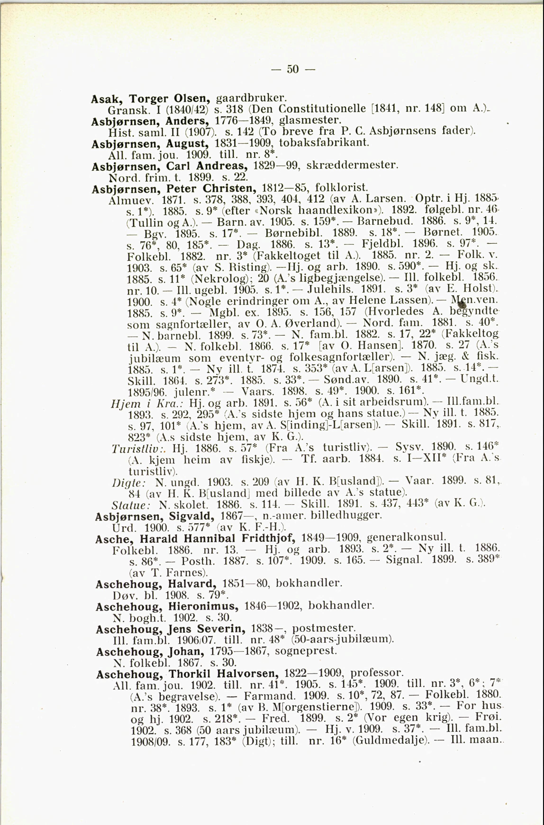 Hist. saml. II (1907). s. 142 (To breve fra P. C. Asbjørnsens fader).