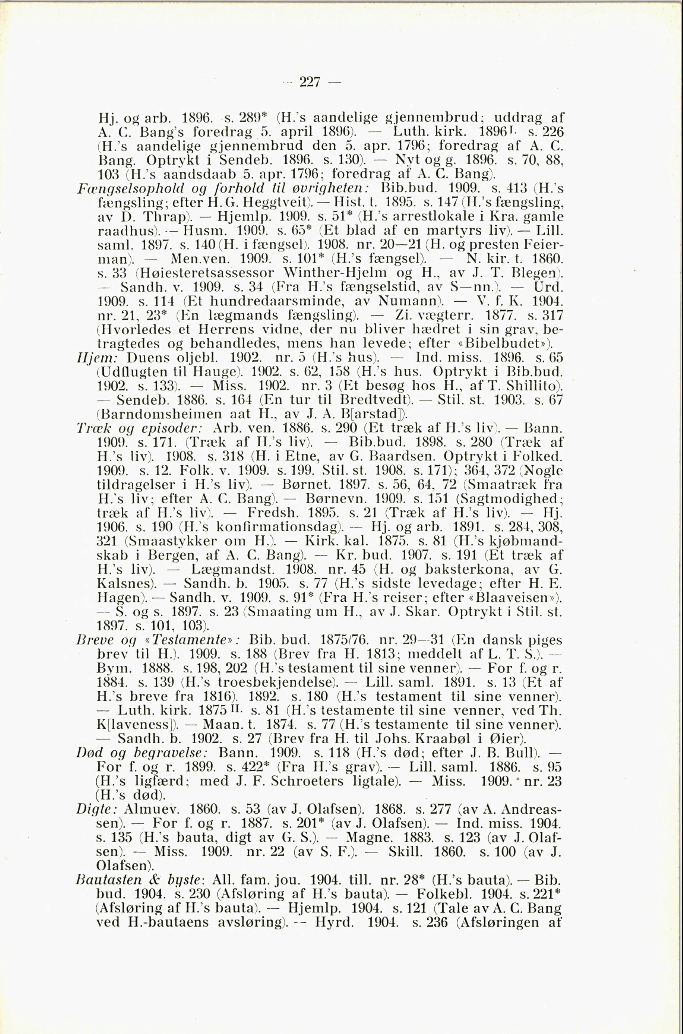 1909.’ s. 171. (Træk af H.’s liv). - - Bib.bud. 1898. s. 280 (Træk af