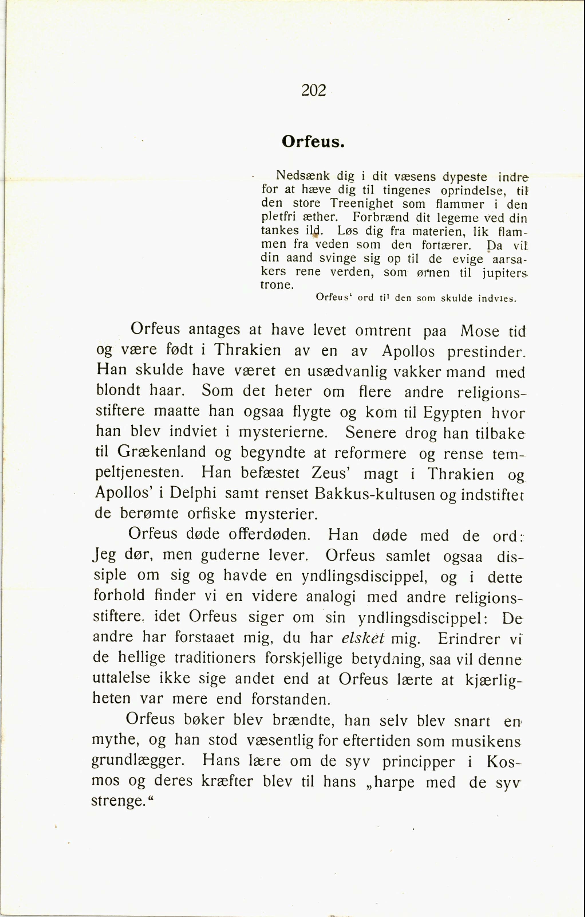 stiftere. idet Orfeus siger om sin yndlingsdiscippel: De