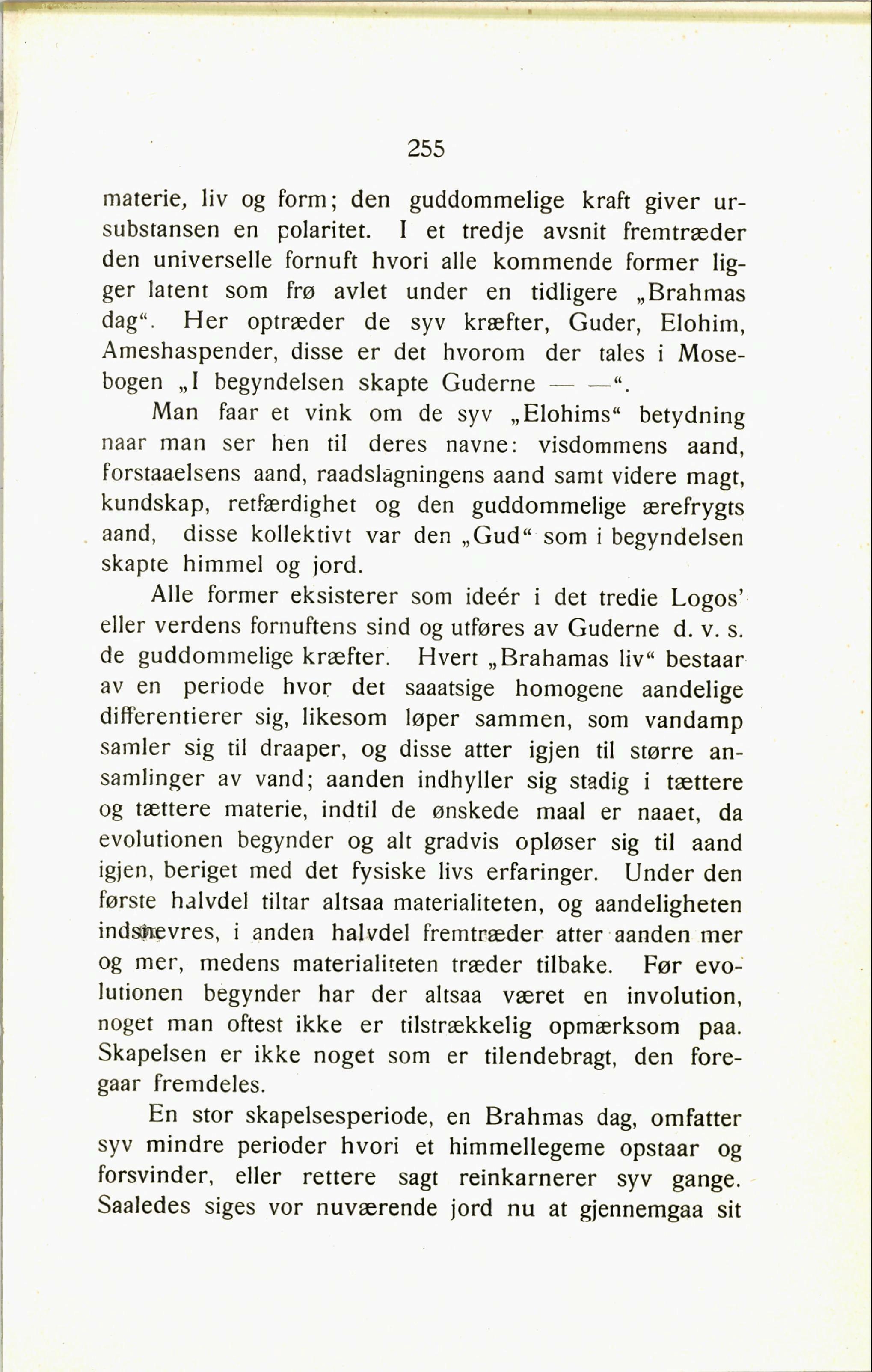 de guddommelige kræfter. Hvert „Brahamas liv“ bestaar