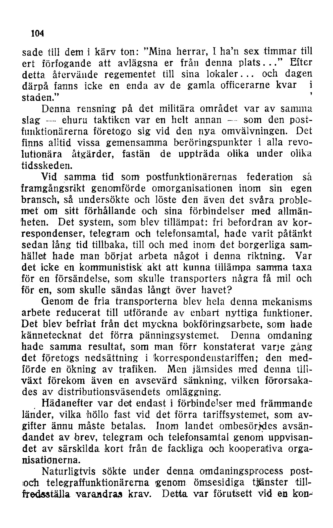 post-funktionärerna företogo sig vid den nya omvälvningen. Det