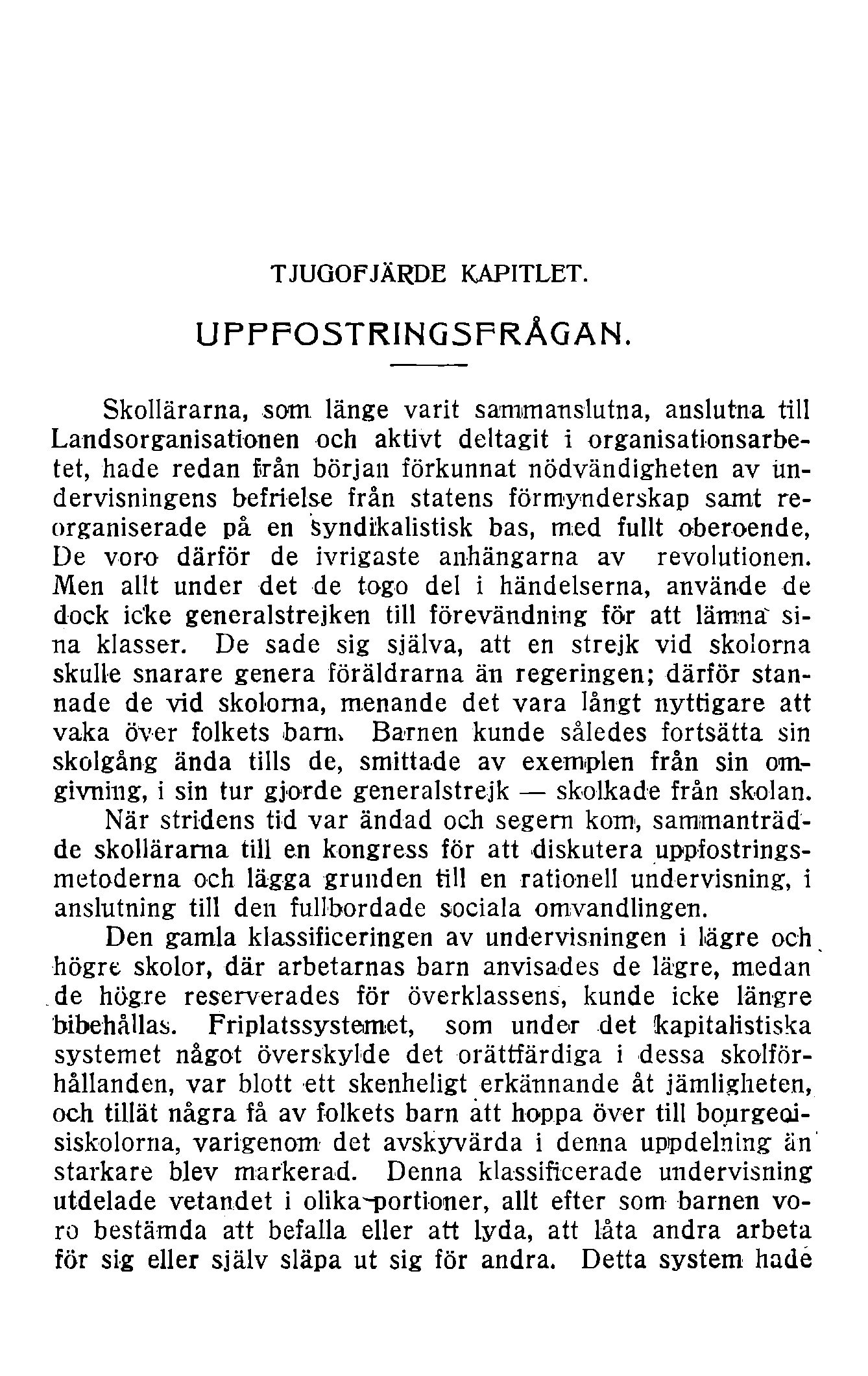 högre skolor, där arbetarnas barn anvisades de lägre, medan