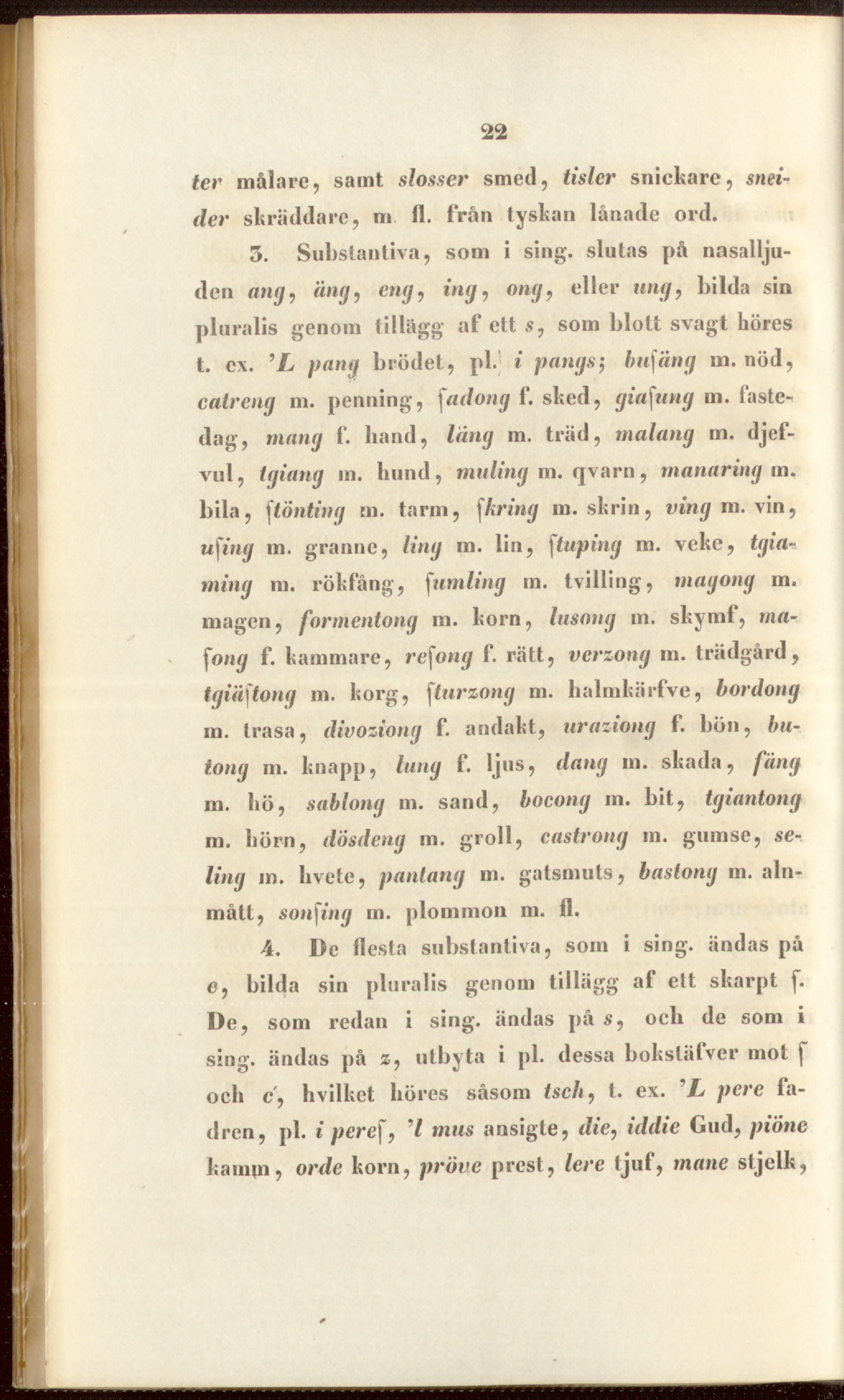 4. De flesta substantiva, som i sing, ändas p