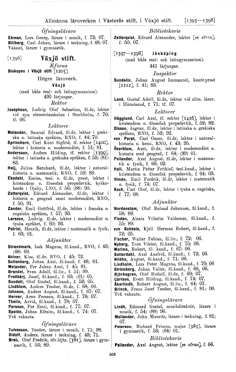 Allmänna läroverken i Västerås stift, i Växjö stift. [i395—1398]
