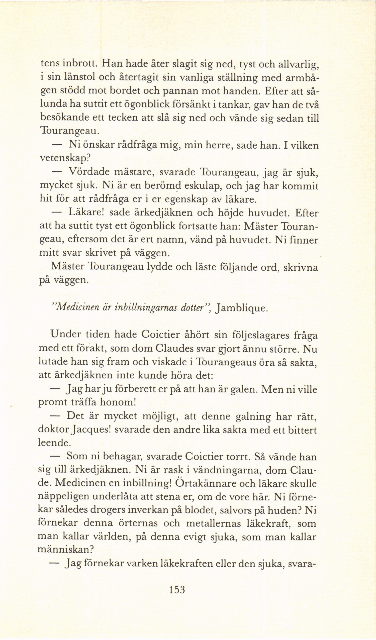 — Läkare! sade ärkedjäknen och höjde huvudet. Efter