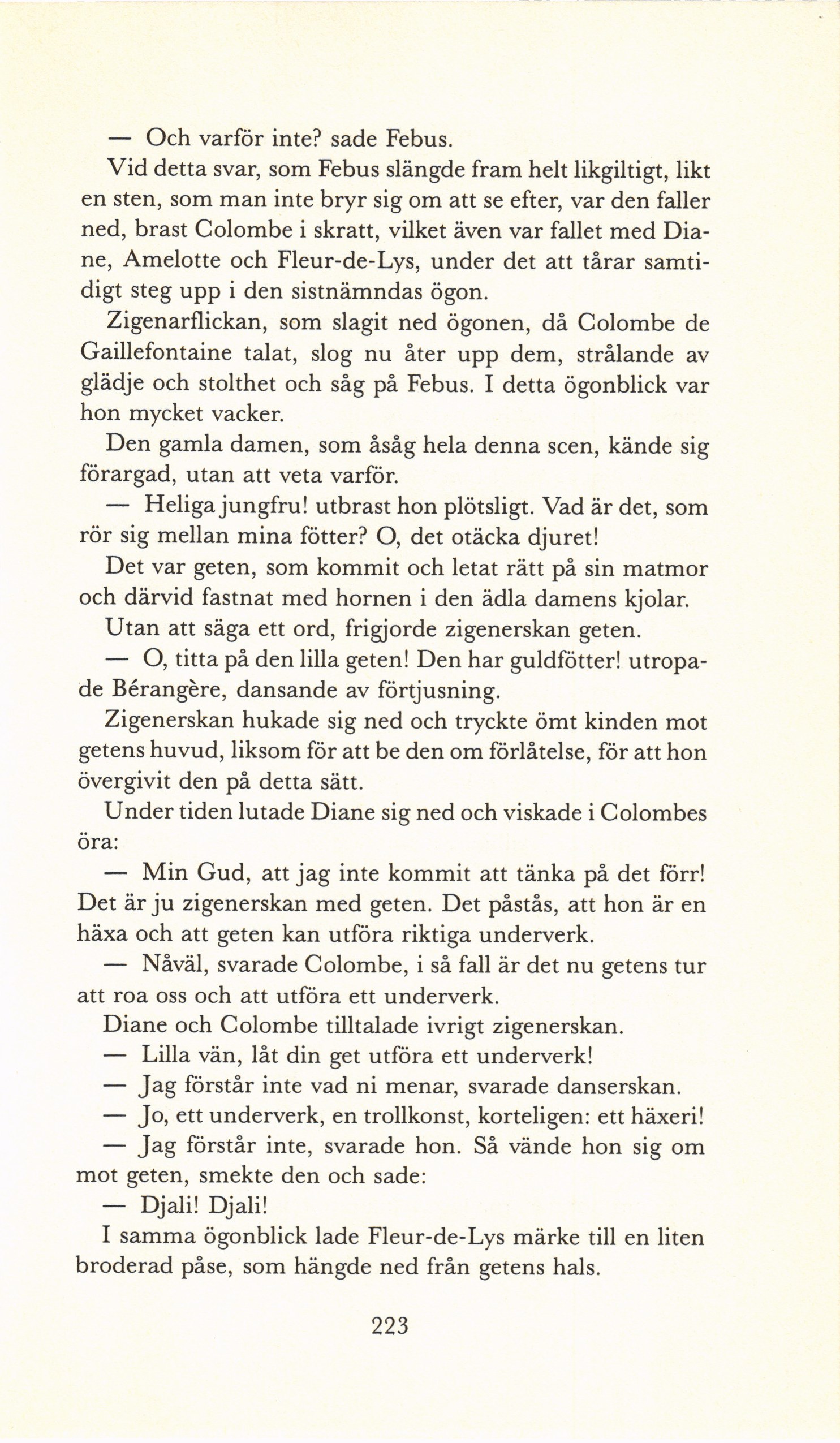 — Nåväl, svarade Colombe, i så fall är det nu getens tur