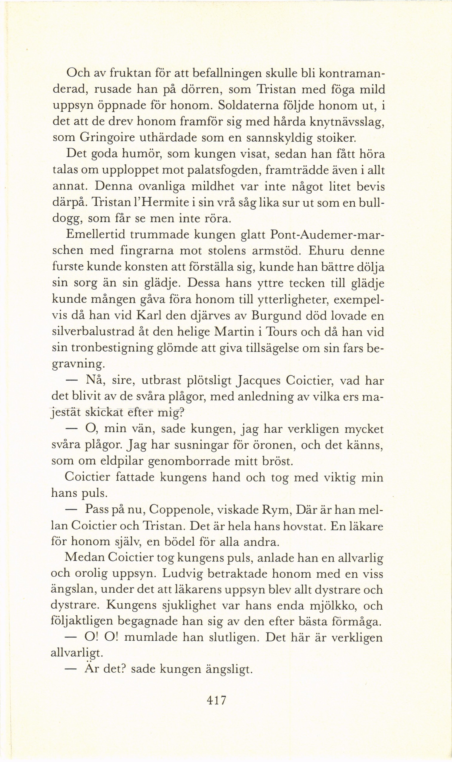 — Nå, sire, utbrast plötsligt Jacques Coictier, vad har