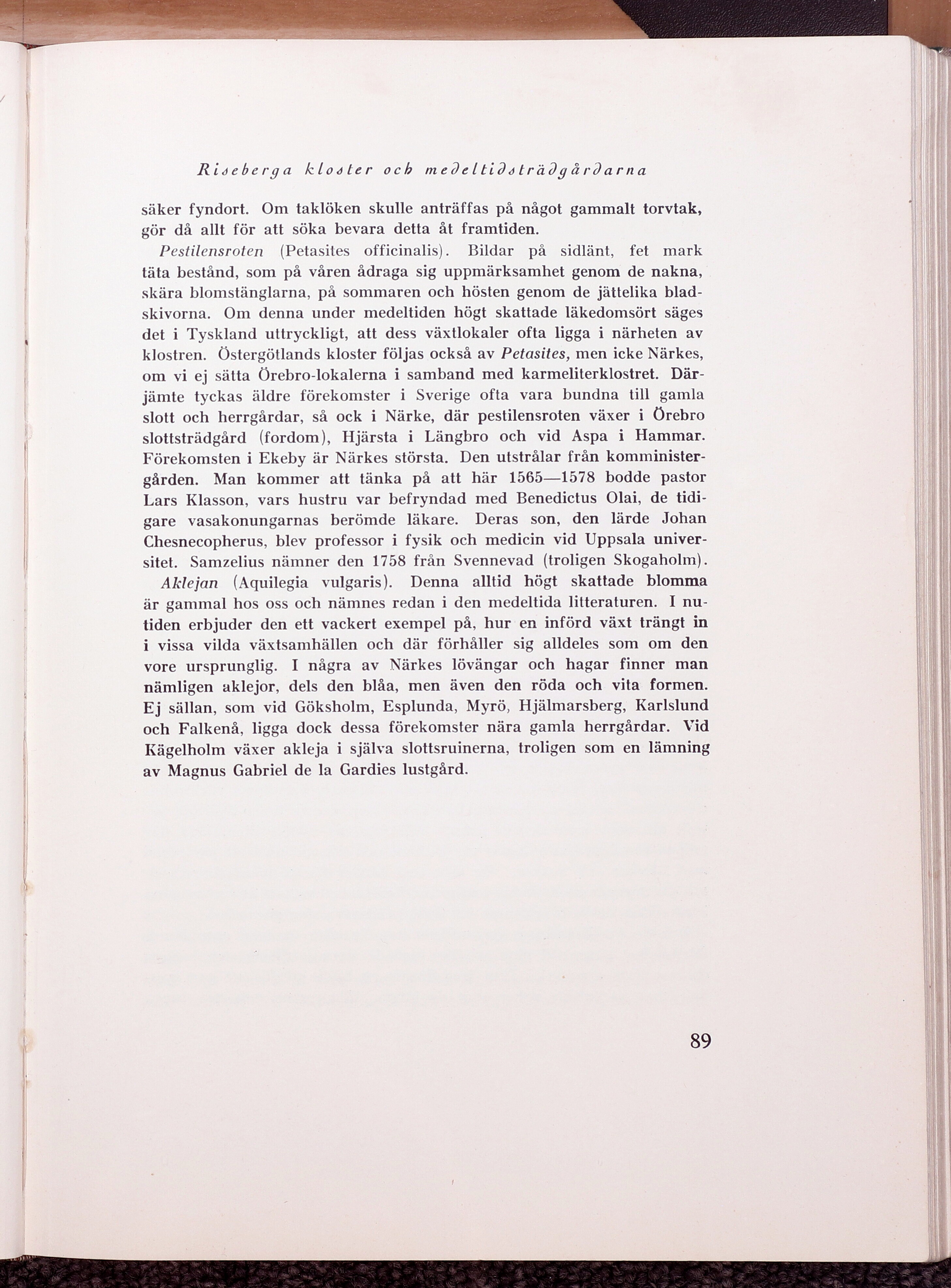 klostren. Östergötlands kloster följas också av Petasites, men icke Närkes,