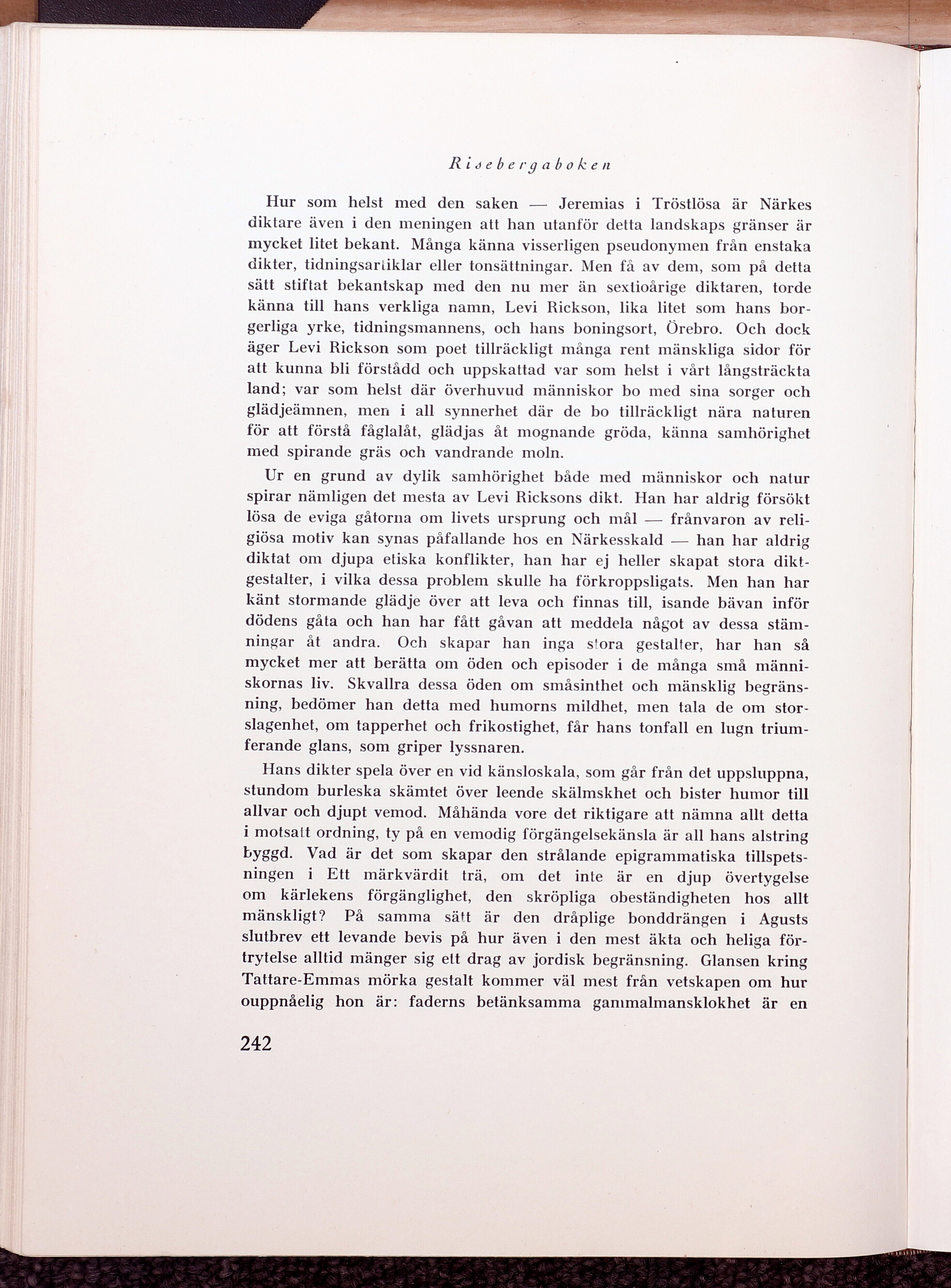 spirar nämligen det mesta av Levi Ricksons dikt. Han har aldrig försökt