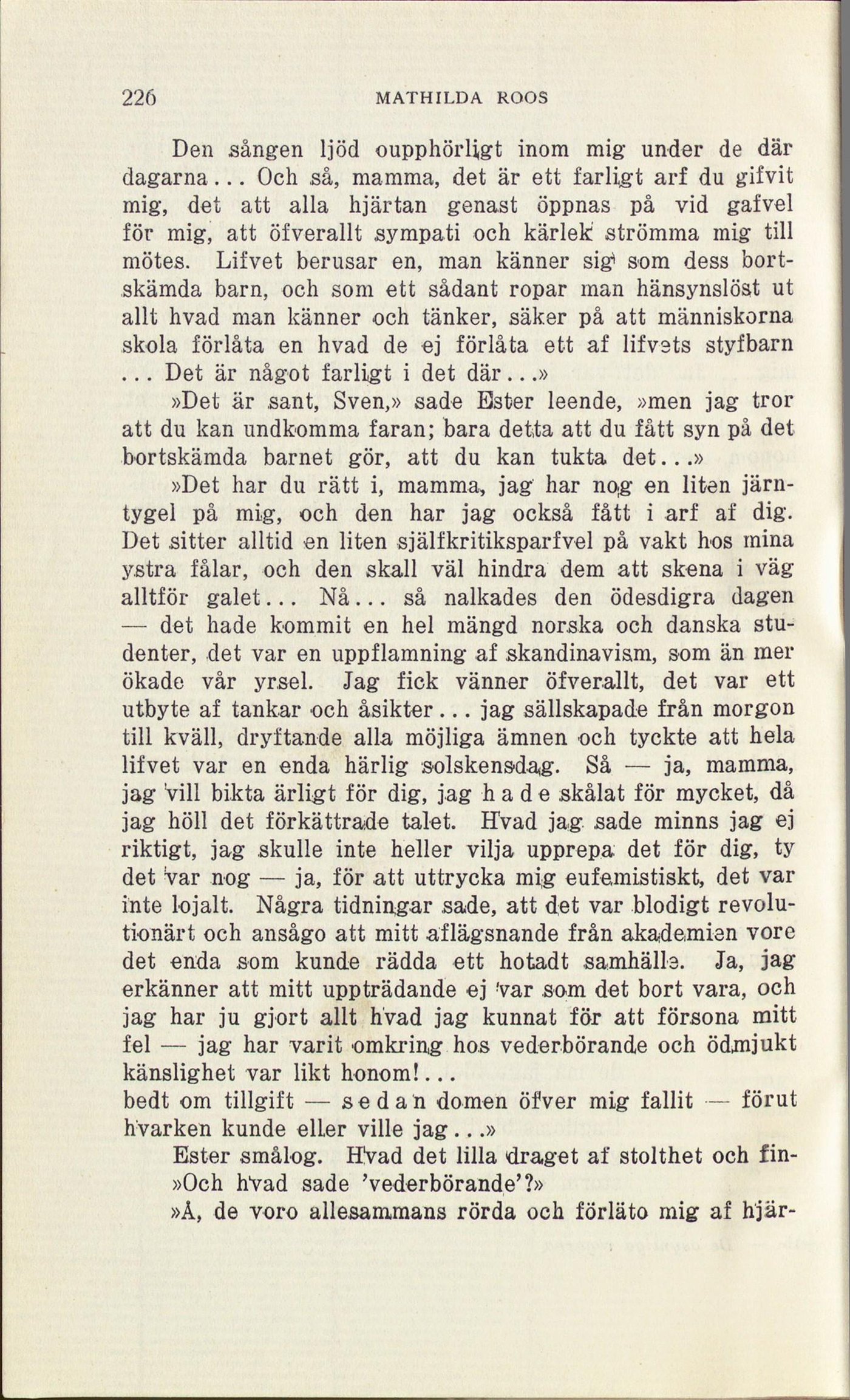 dagarna ... Och så, mamma, det är ett farligt arf du gifvit