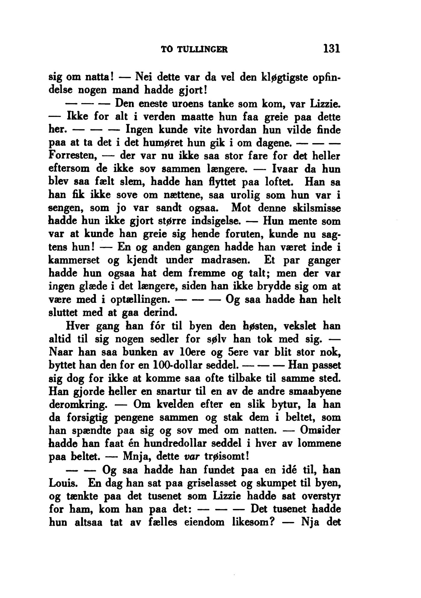 og tænkte paa det tusenet som Lizzie hadde sat overstyr