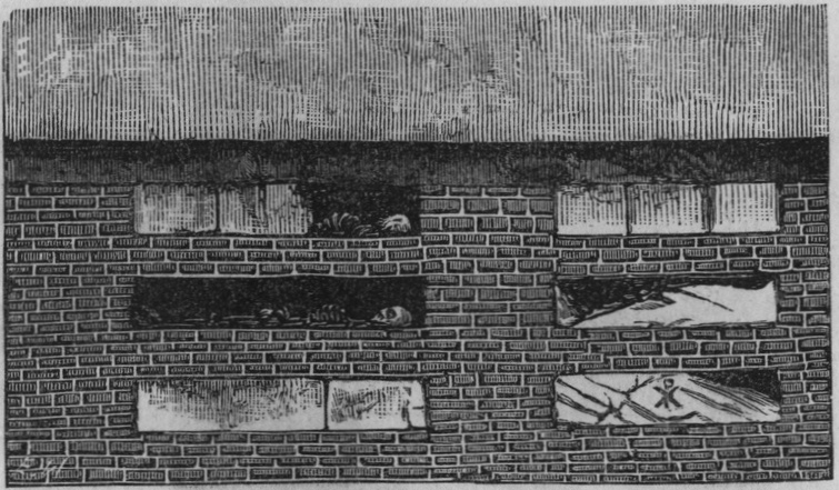 kropparna skiljas genom mellanlagda hällar. Öppningarna äro