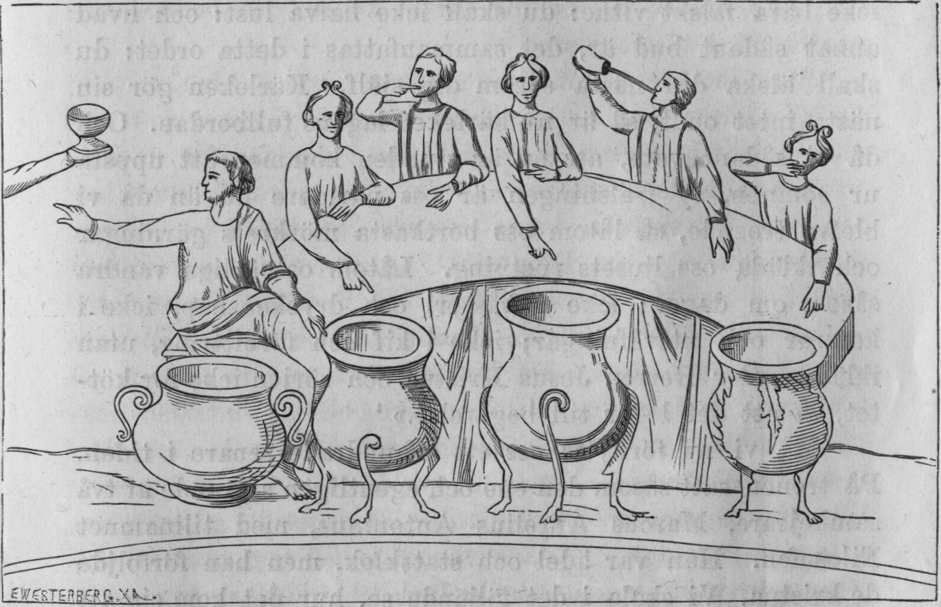 | Bild 14. Måltid. (Väggmålning i katakomben S. Pietro e Marcellino). |