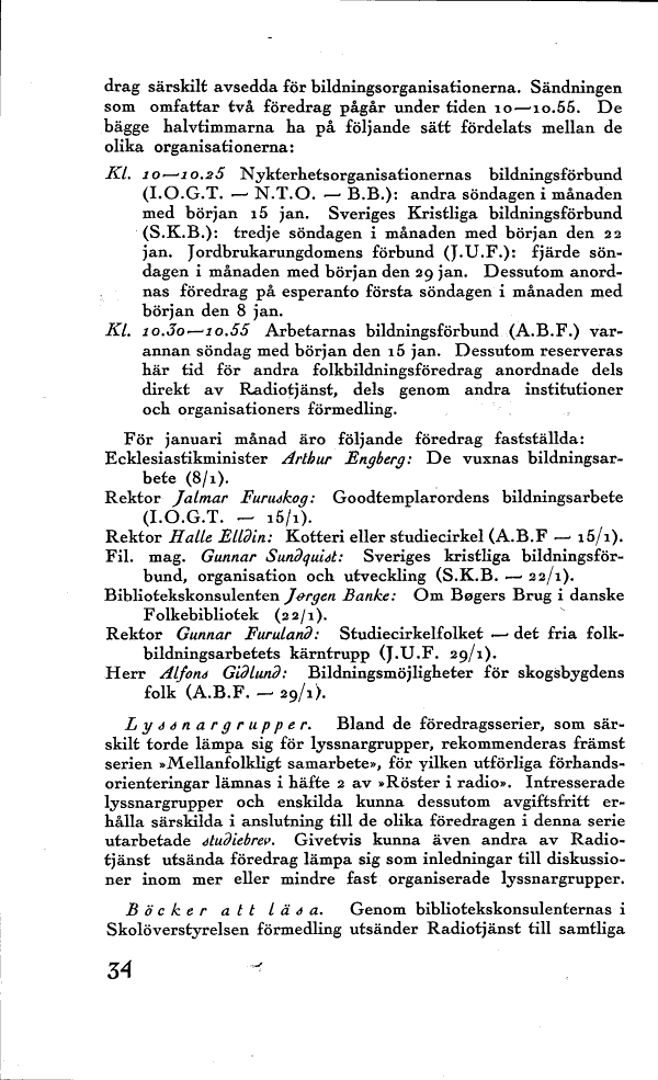 föredrag särskilt avsedda för bildningsorganisationerna. Sändningen