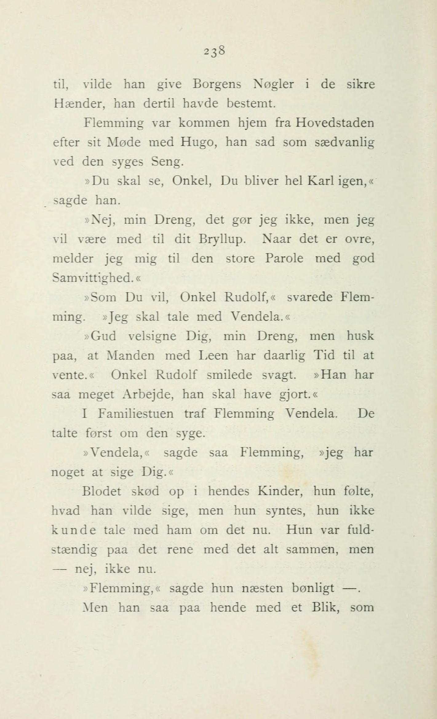 »Vendela,« sagde saa Flemming, »jeg har
