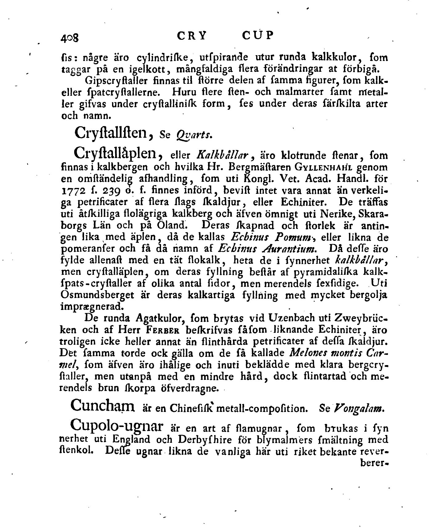Cryftallåplen, eller Kalkb all ar, äro klotrunde ftenar, fom