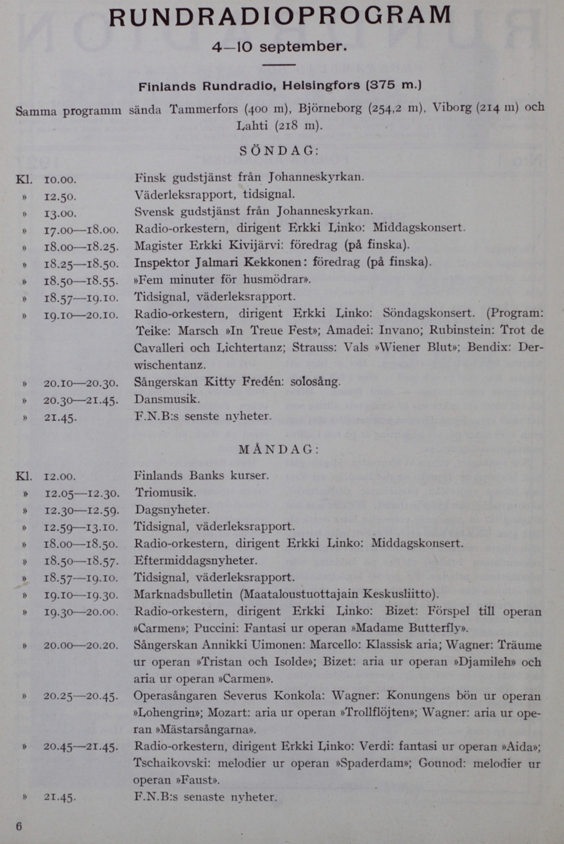 Full resolution (JPEG) - On this page / på denna sida - N:o 1. 4—10 Sept. - Rundradioprogram 4—10 september