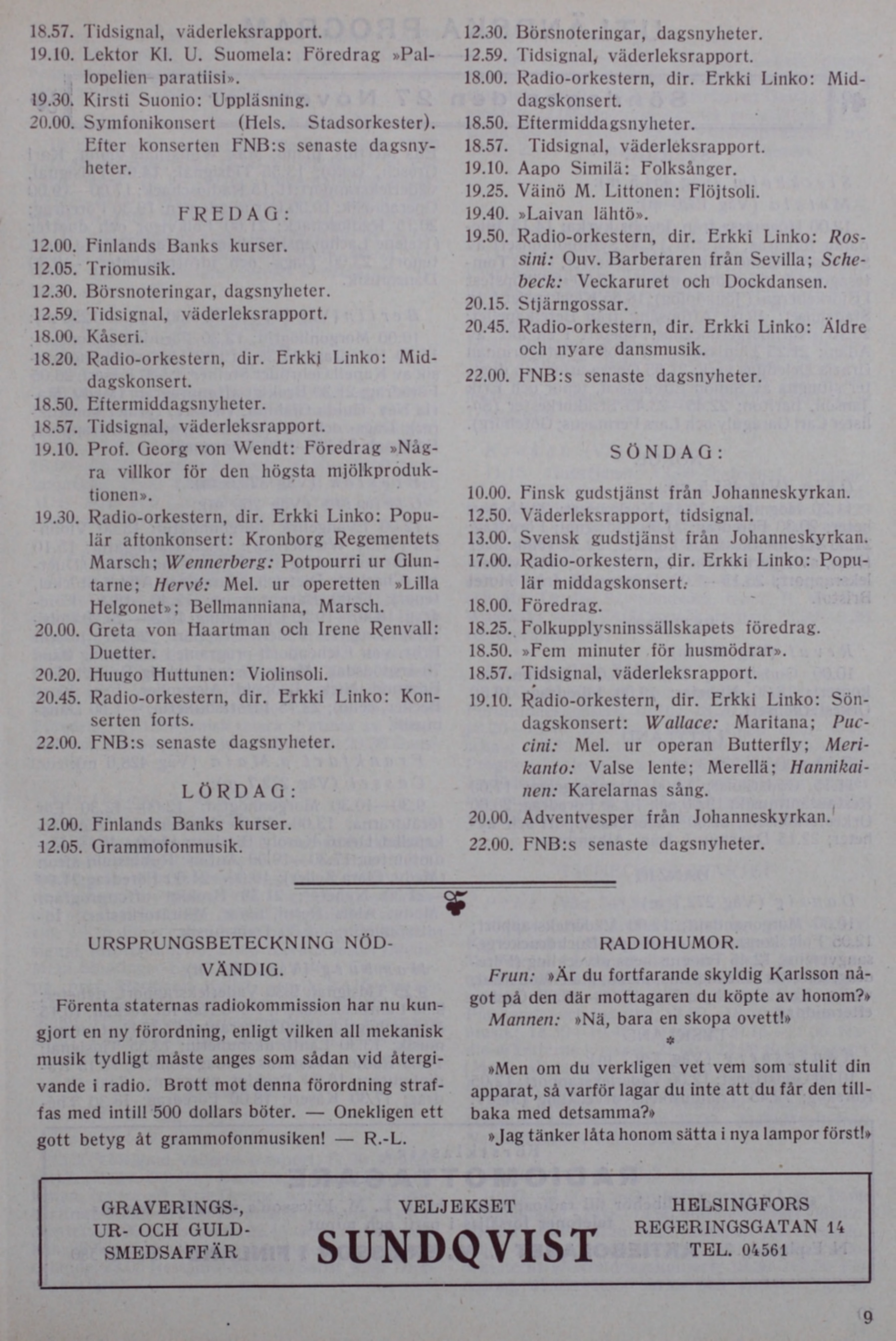Full resolution (JPEG) - On this page / på denna sida - N:o 13. 27 Nov.—3 Dec. - Rundradioprogram 27 november—4 december - Ursprungsbeteckning nödvändig - Radiohumor - Annonser