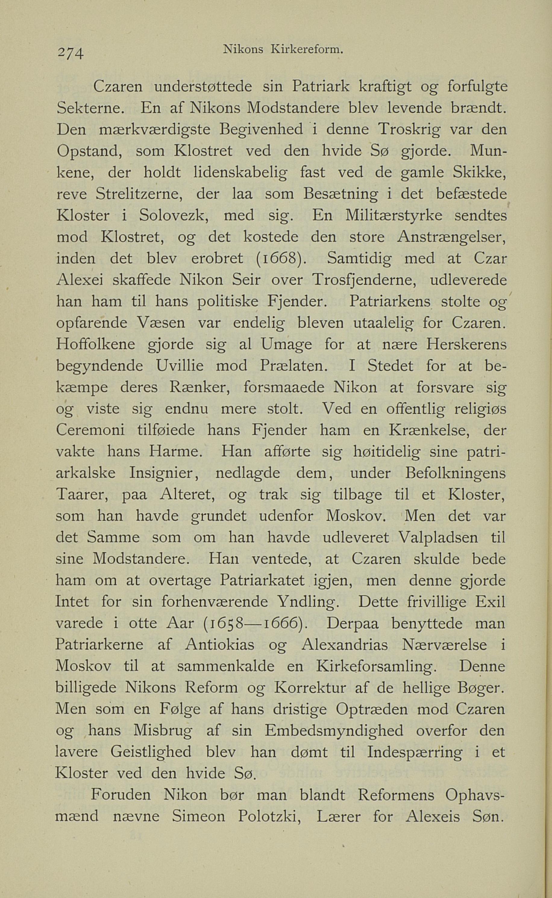 Czaren understøttede sin Patriark kraftigt og forfulgte