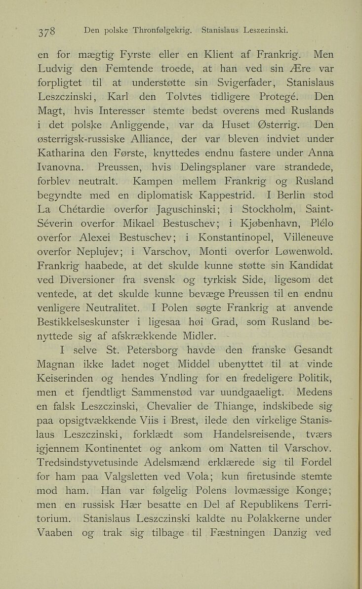 378 Den polske Thronfølgekrig. Stanislaus Leszezinski.