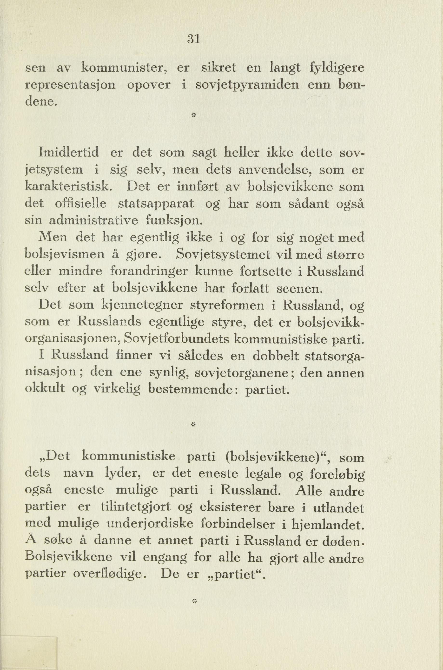 bolsjevismen å gjøre. Sovjetsystemet vil med større