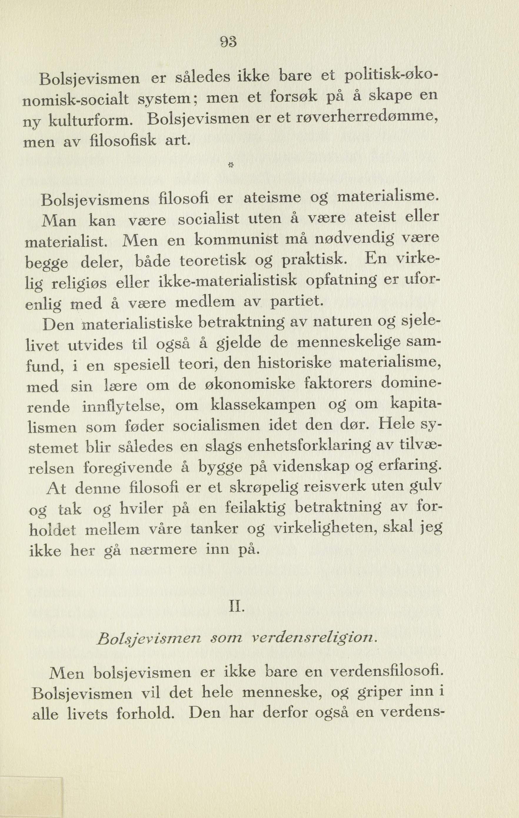 Bolsjevismens filosofi er ateisme og’ materialisme.