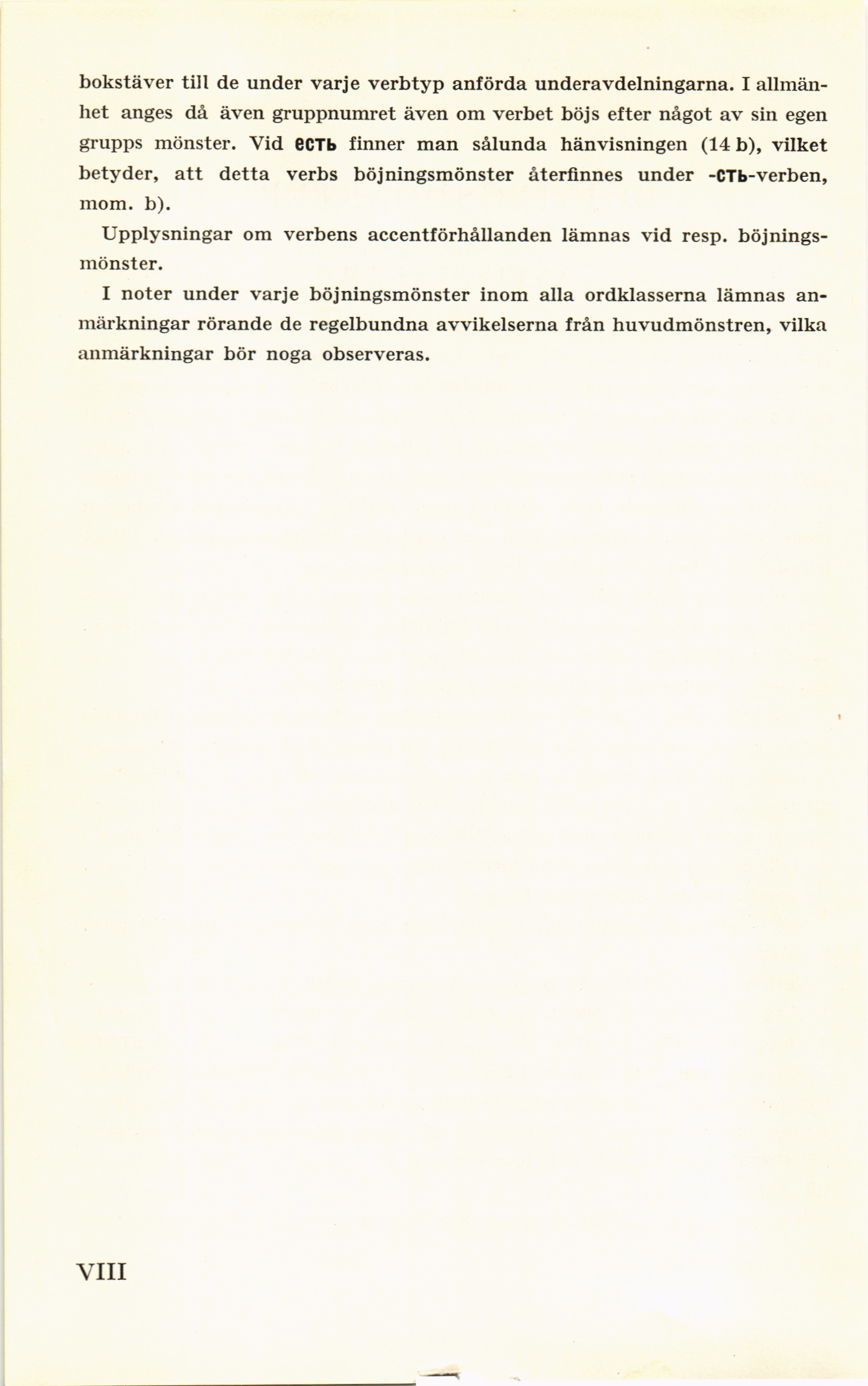 bokstäver till de under varje verbtyp anförda underavdelningarna. I