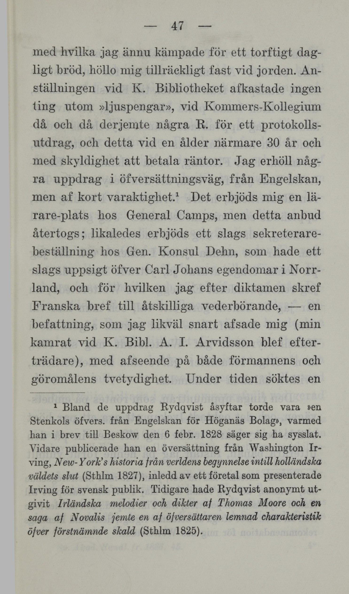 kamrat vid K. Bibl. A. I. Arvidsson blef efter-