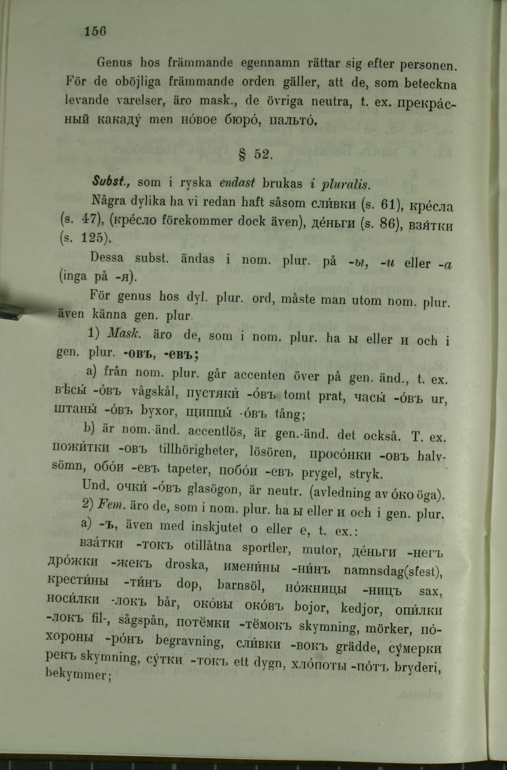 (s. 47), (крёсло förekommer dock även), дёньги (s. 86), взйтки