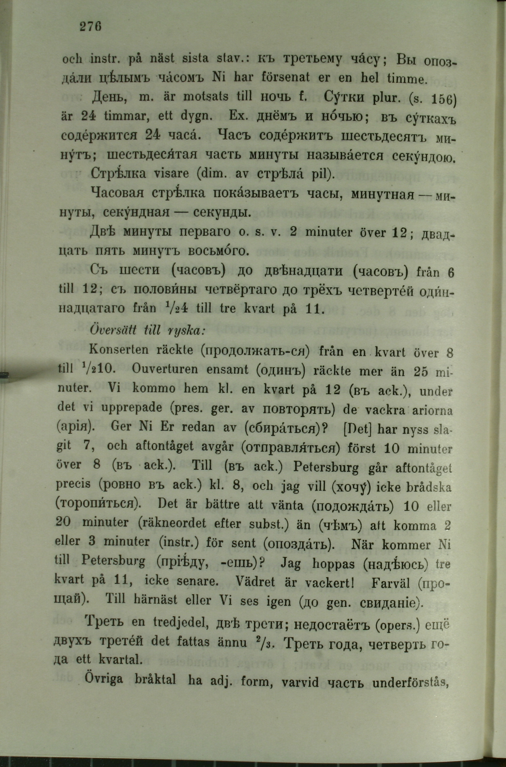 Двѣ минуты перваго о. s. v. 2 minuter över 12;