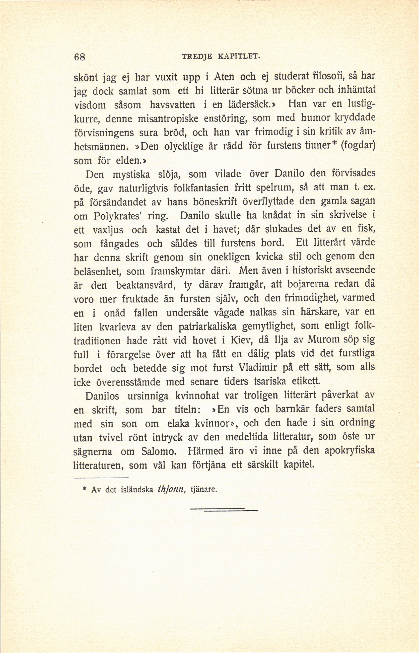 ämbetsmännen. »Den olycklige är rädd för furstens tiuner[1] (fogdar)