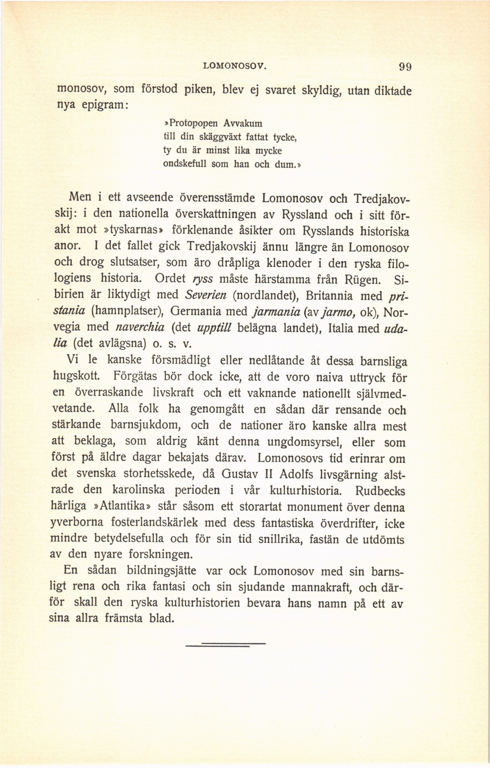 först på äldre dagar bekajats därav. Lomonosovs tid erinrar om