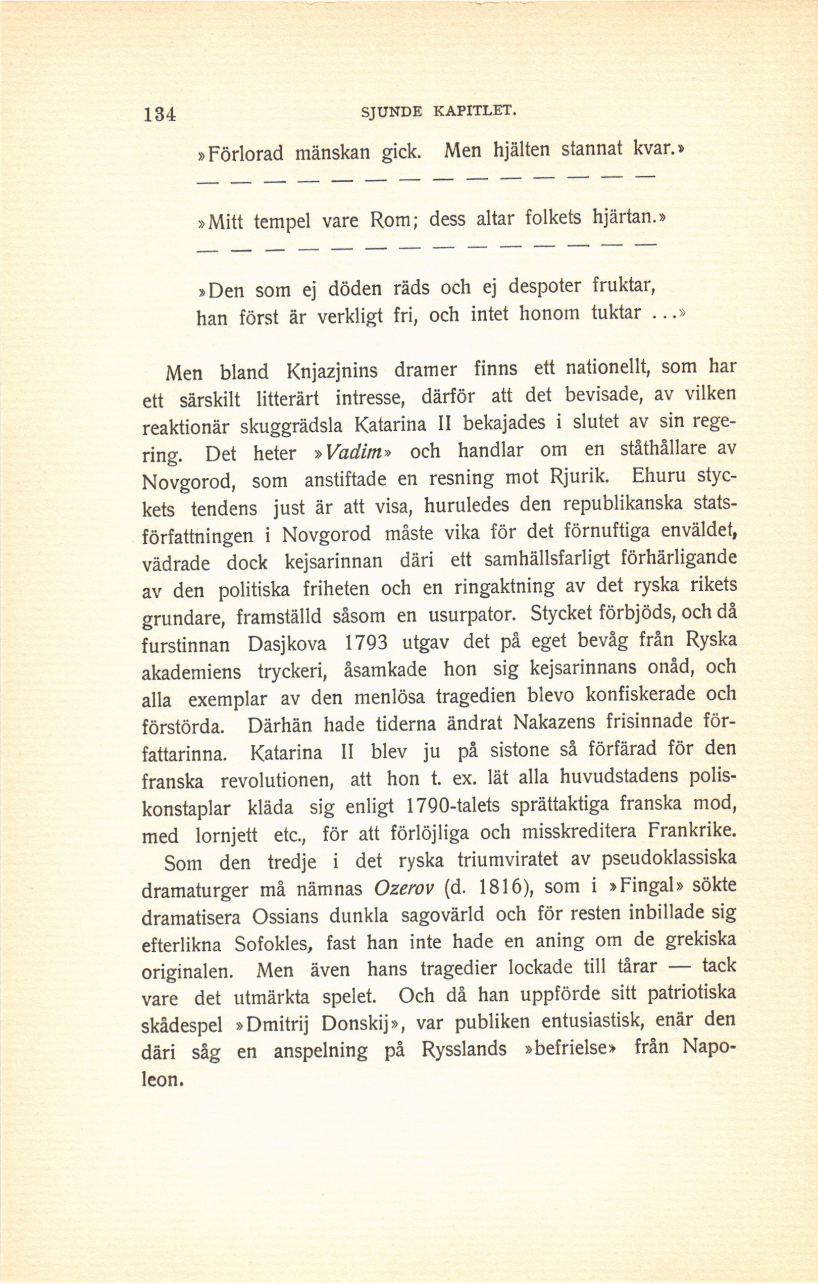 dramaturger må nämnas Ozerov (d. 1816), som i »Fingal» sökte