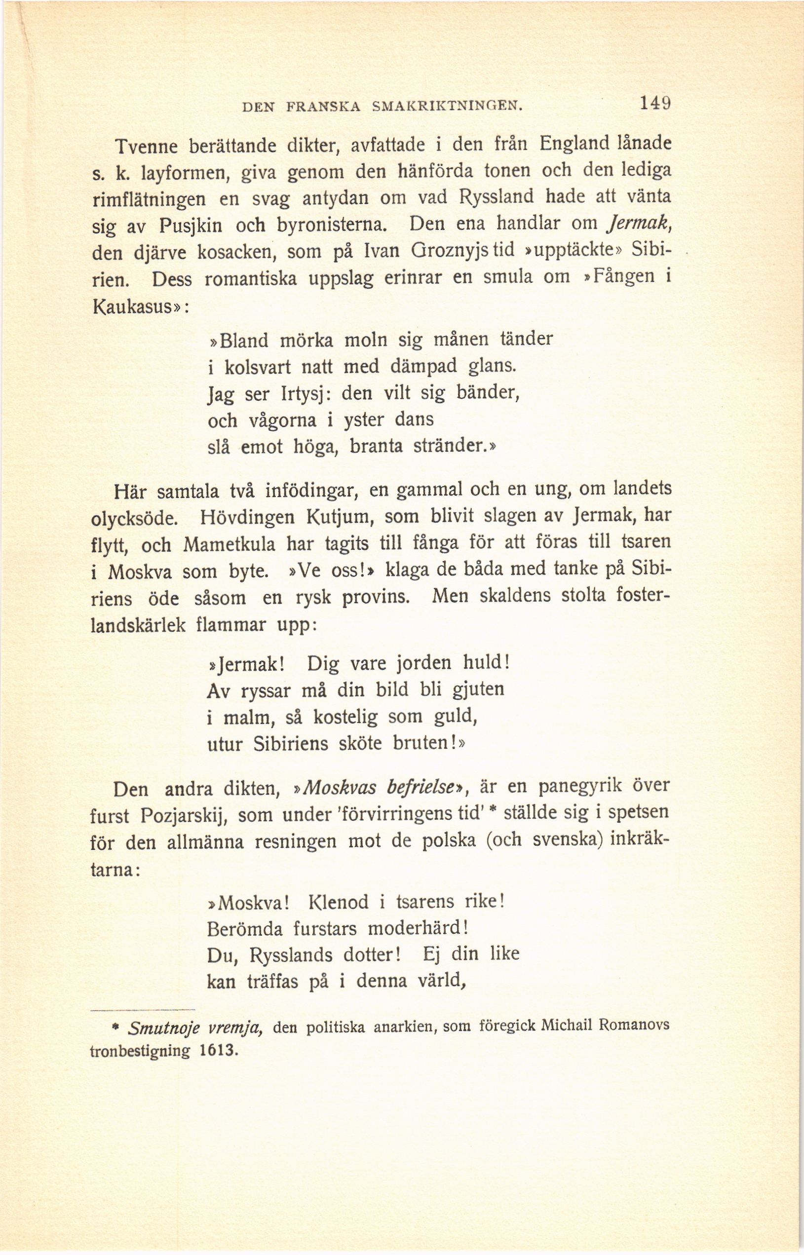 sig av Pusjkin och byronisterna. Den ena handlar om Jermak,