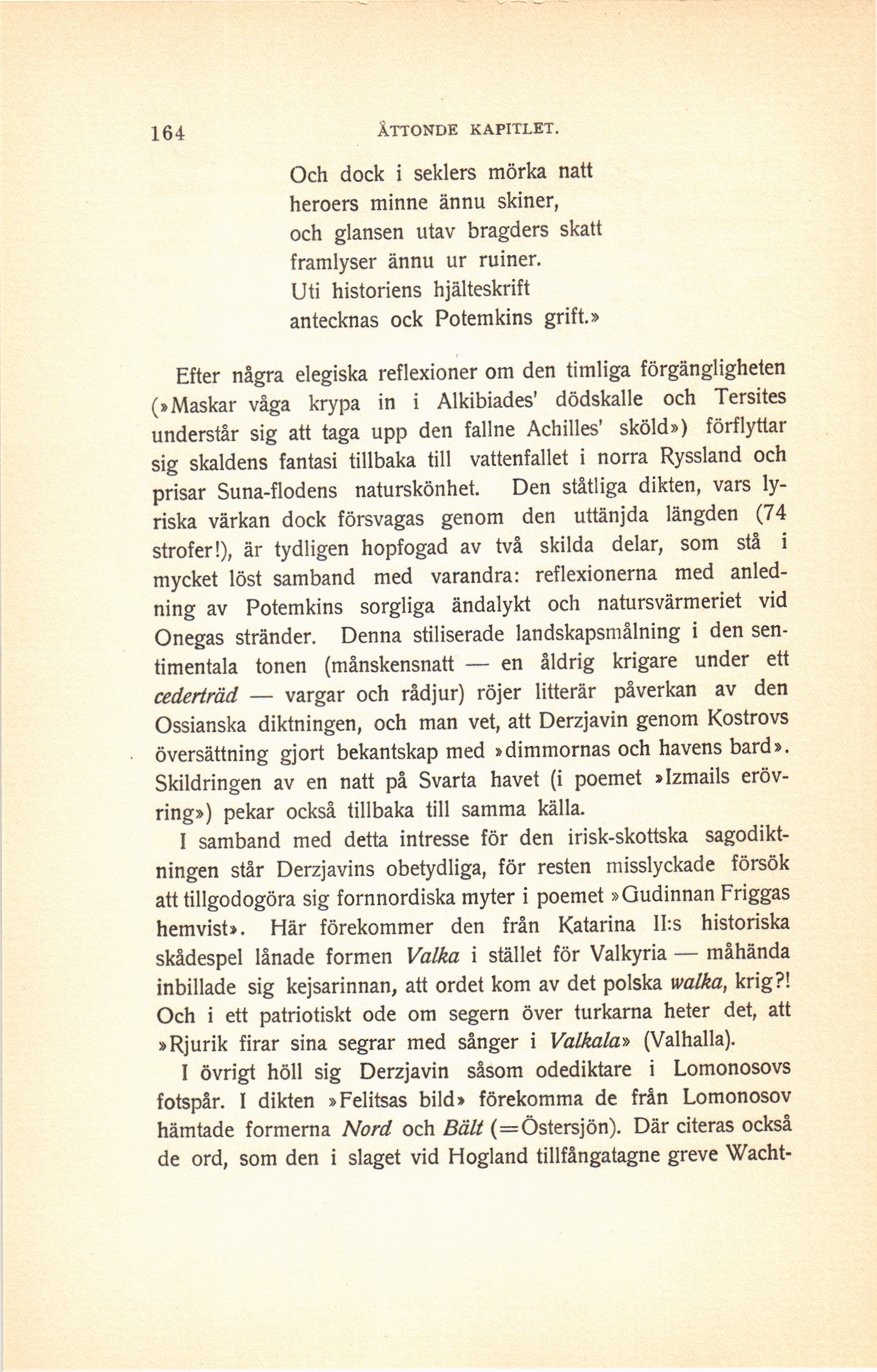 fotspår. I dikten »Felitsas bild» förekomma de från Lomonosov