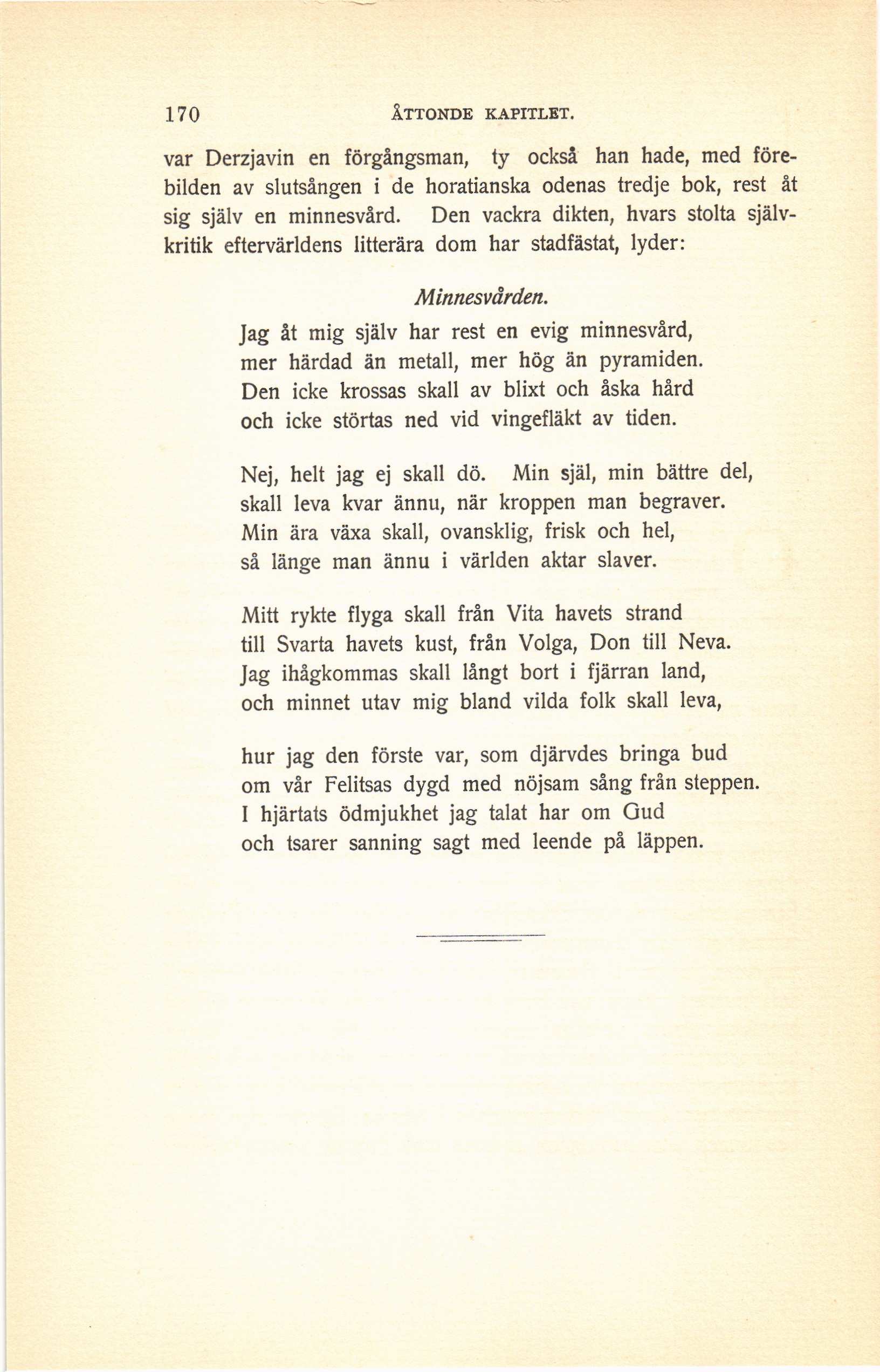 sig själv en minnesvård. Den vackra dikten, hvars stolta