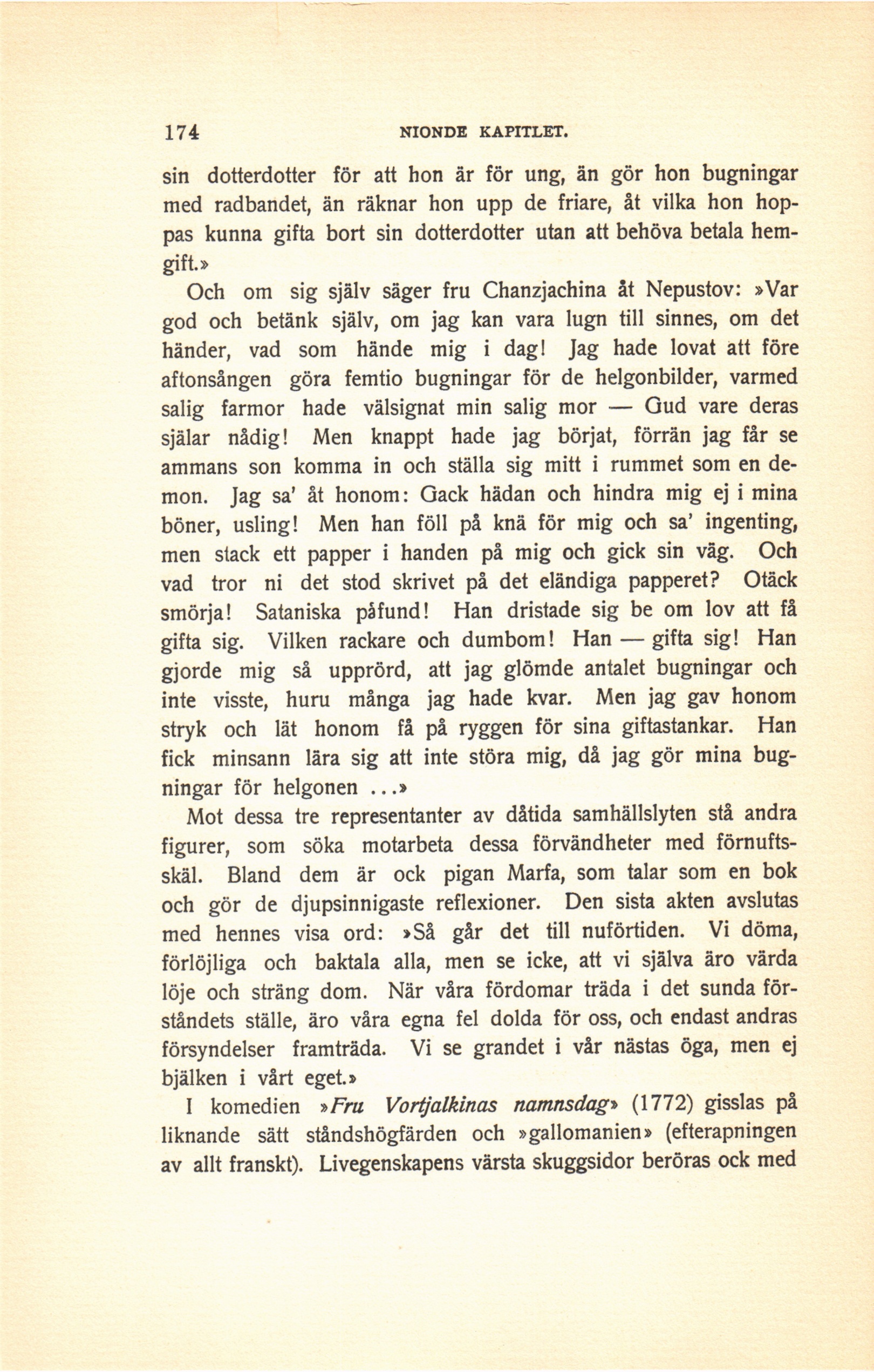 I komedien »Fru Vortjalkinas namnsdag» (1772) gisslas på