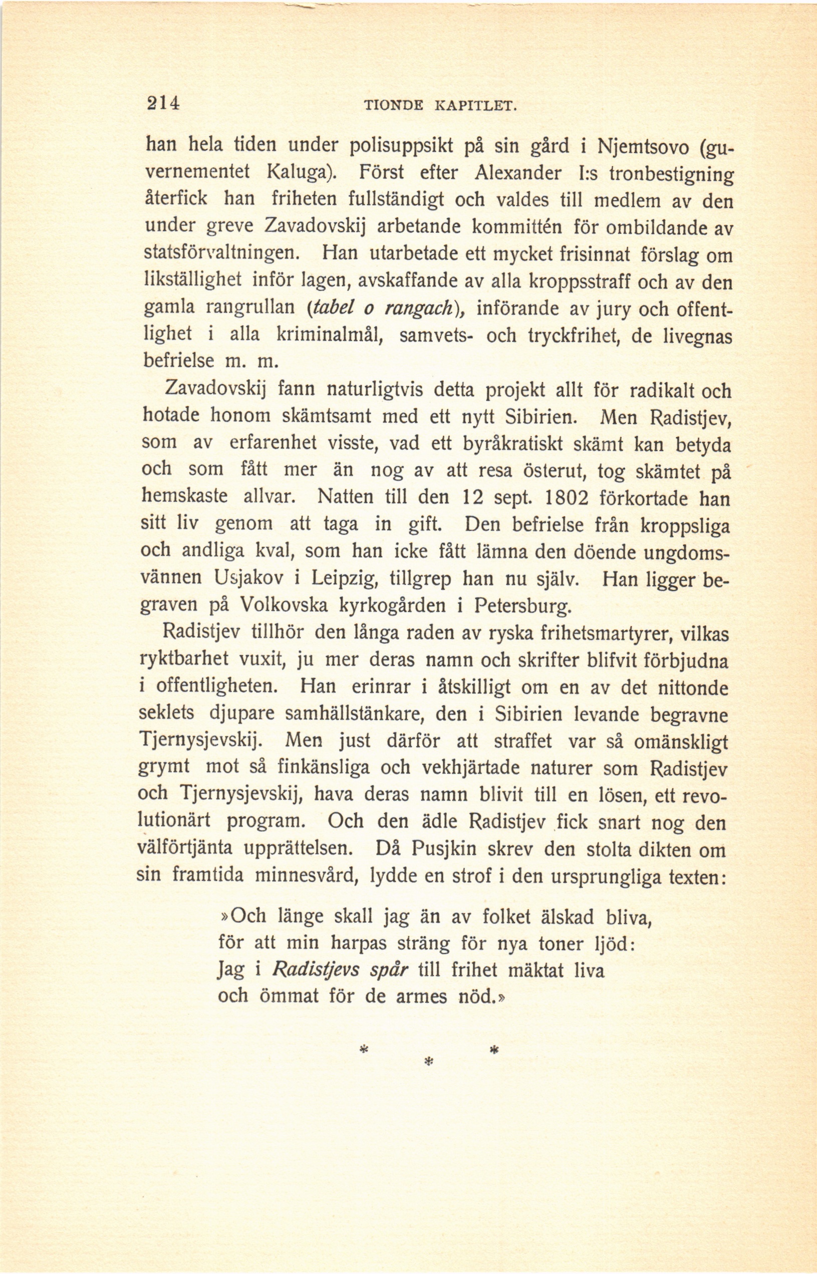 Radistjev tillhör den långa raden av ryska frihetsmartyrer, vilkas