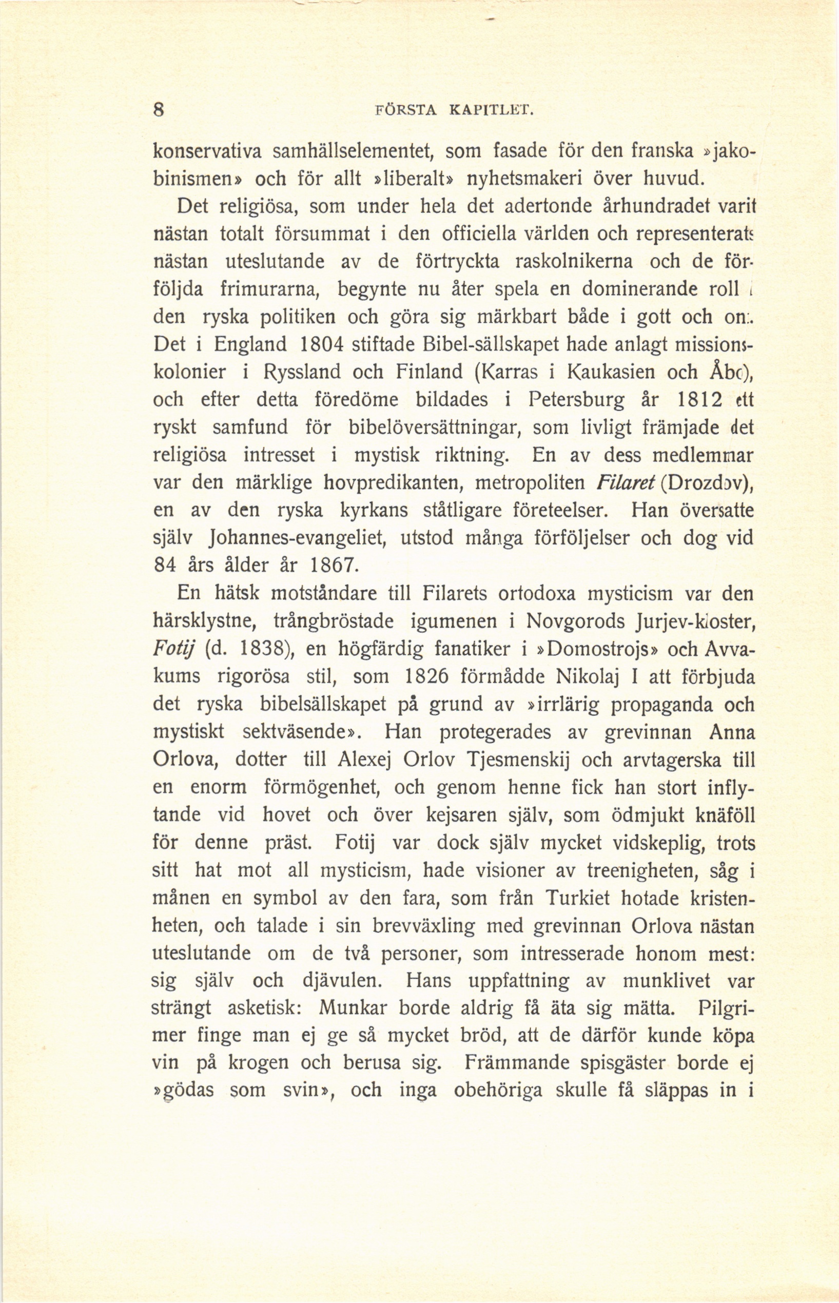 kristenheten, och talade i sin brevväxling med grevinnan Orlova nästan