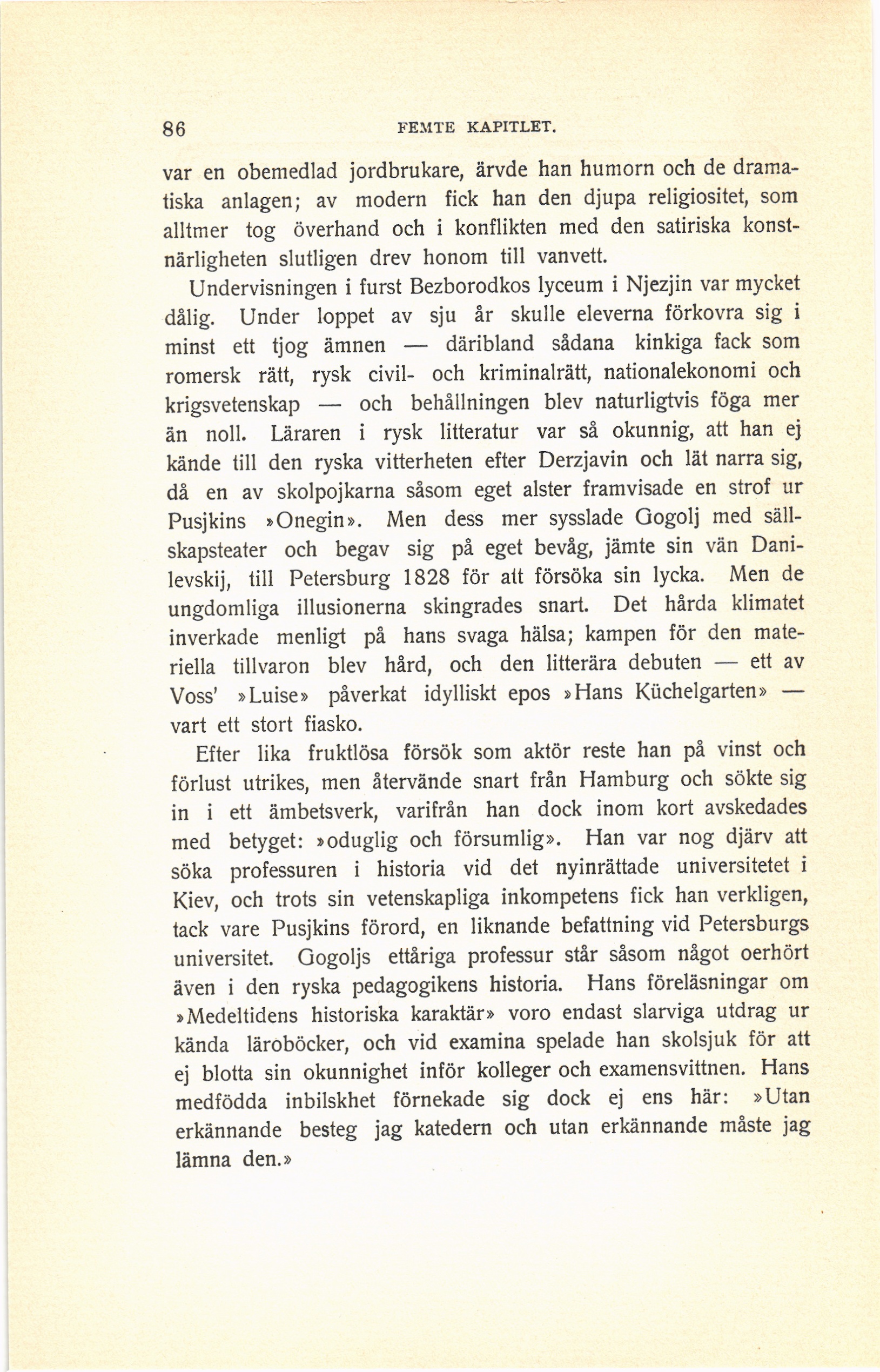 universitet. Gogoljs ettåriga professur står såsom något oerhört