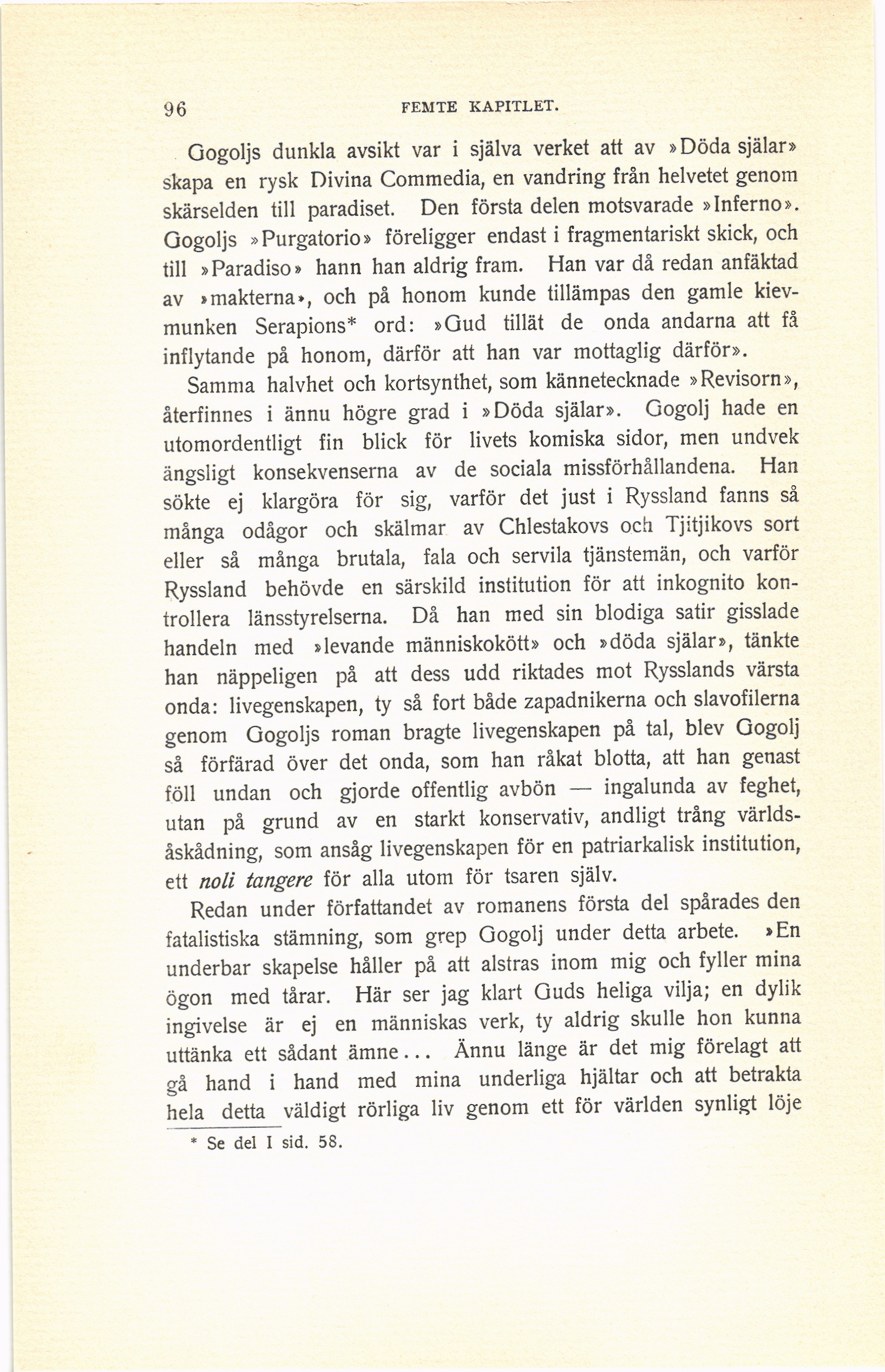 Gogoljs »Purgatorio» föreligger endast i fragmentariskt skick, och
