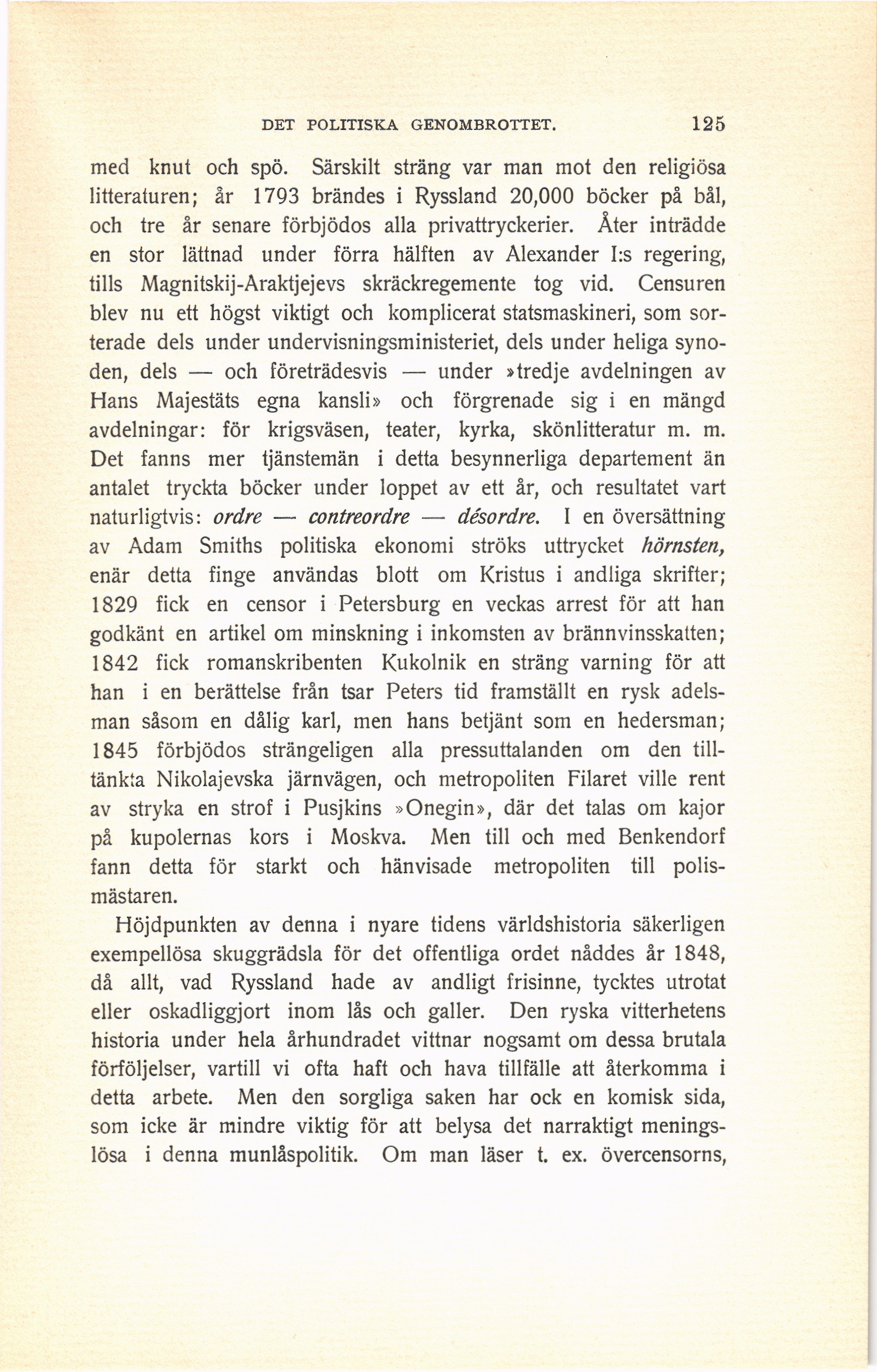tills Magnitskij-Araktjejevs skräckregemente tog vid. Censuren