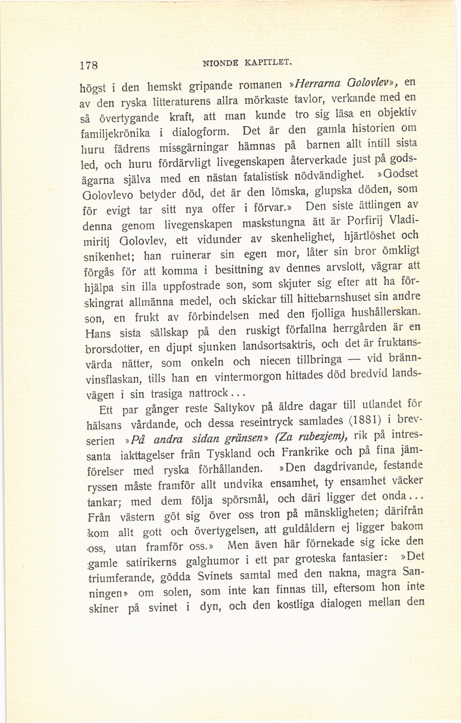 högst i den hemskt gripande romanen »Herrarna Qolovlev», en