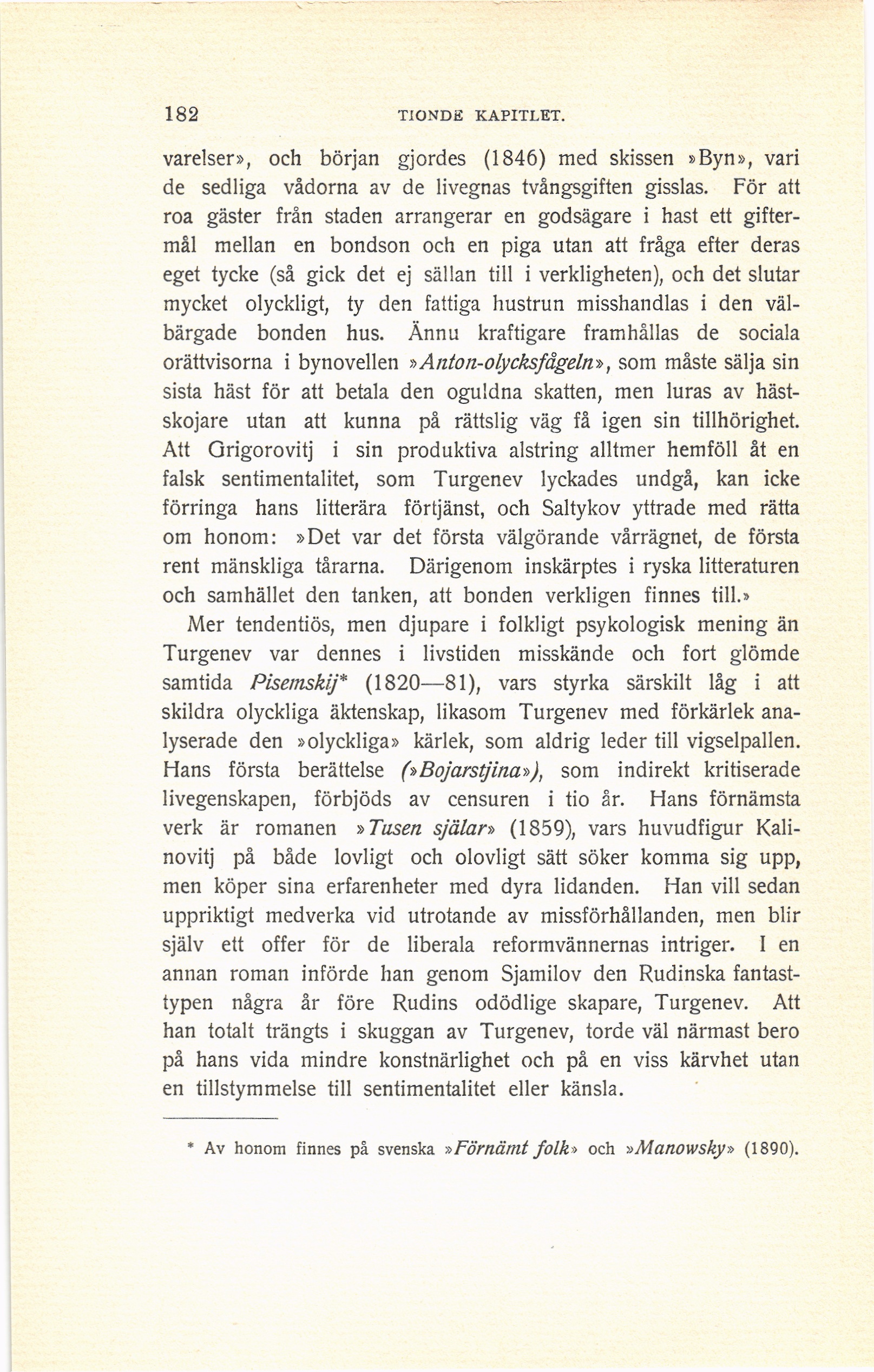 han totalt trängts i skuggan av Turgenev, torde väl närmast bero