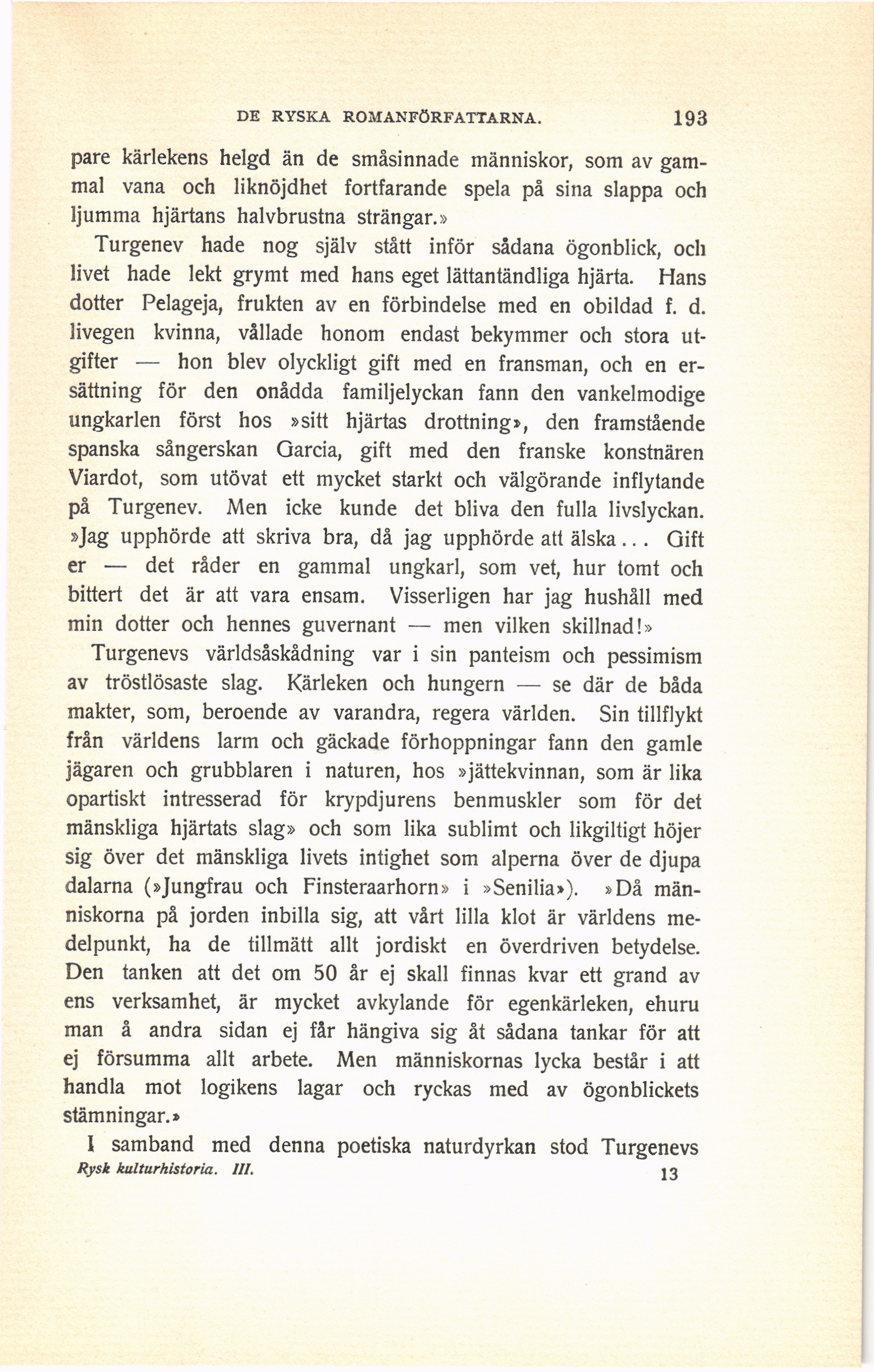på Turgenev. Men icke kunde det bliva den fulla livslyckan.