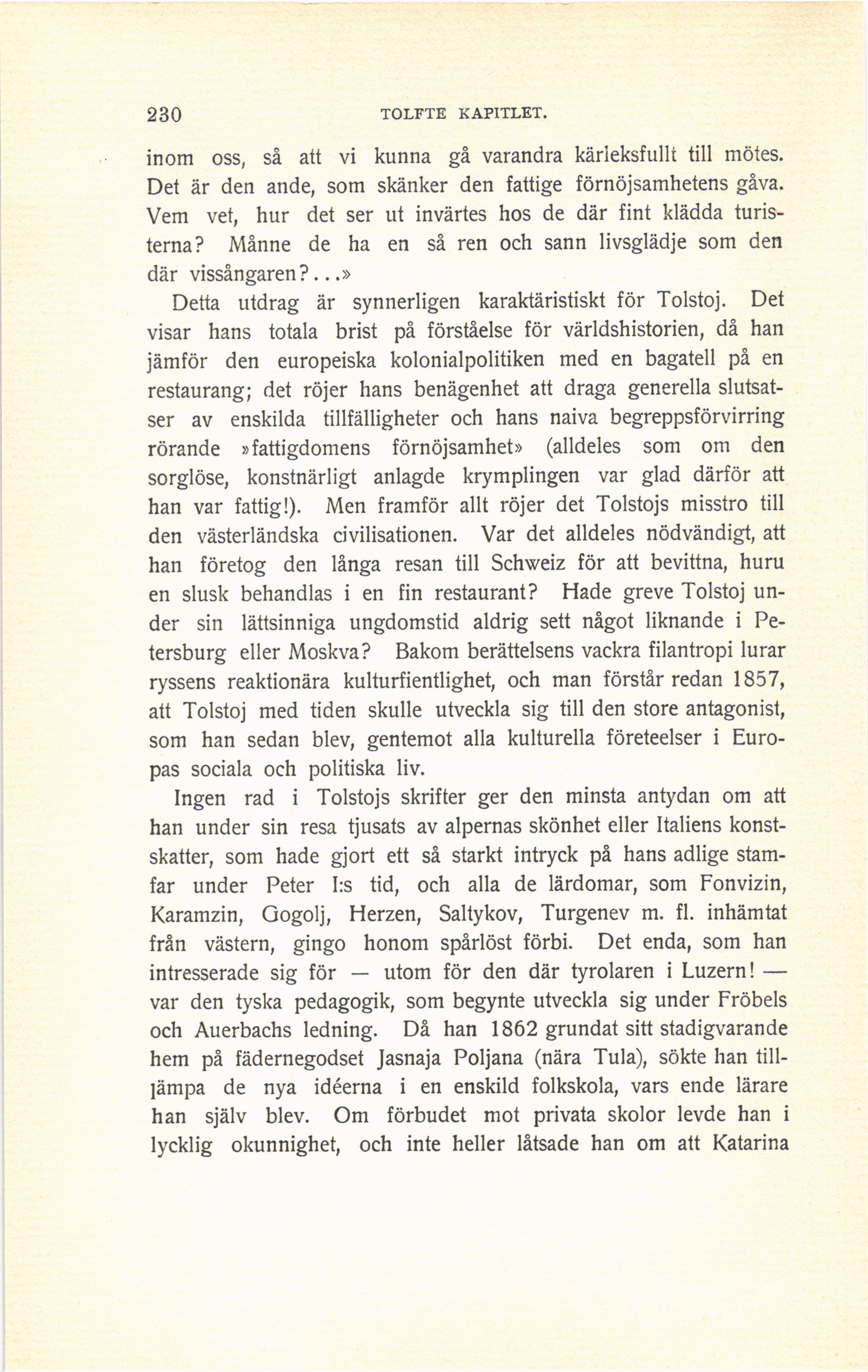 Detta utdrag är synnerligen karaktäristiskt för Tolstoj. Det