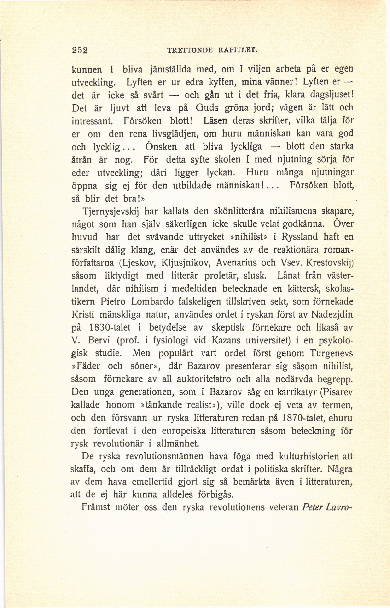 »Fäder och söner», där Bazarov presenterar sig såsom nihilist,
